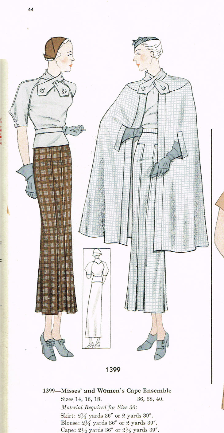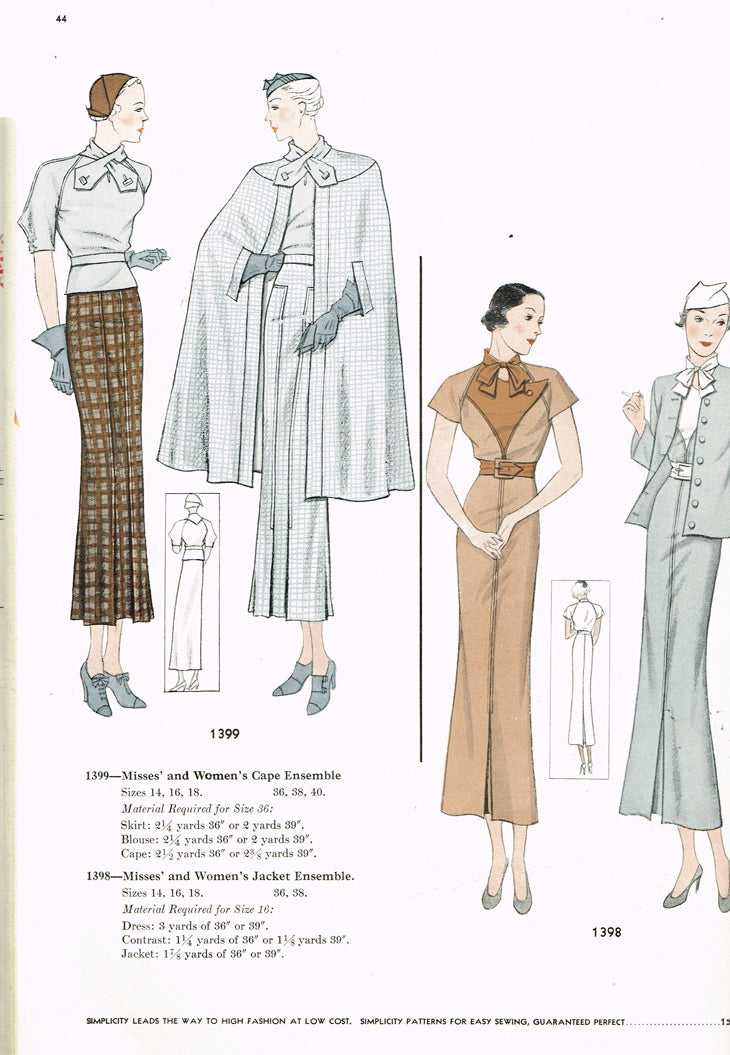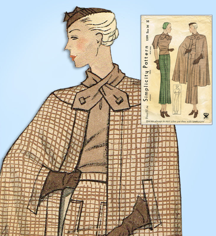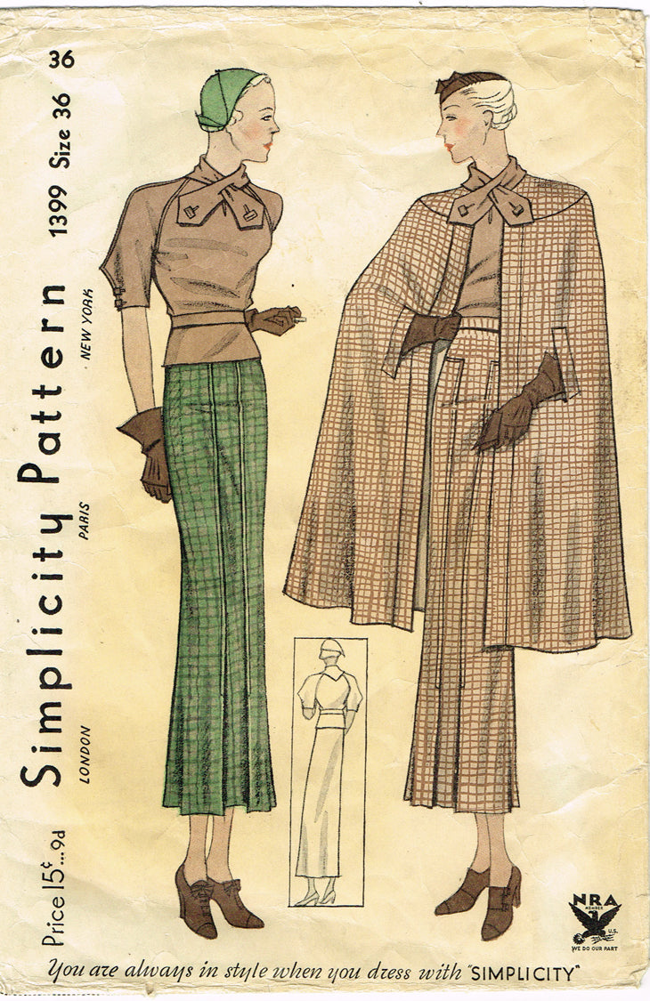1930s Vintage Simplicity Sewing Pattern 1399 Uncut Misses Suit and Cape Sz 36 B