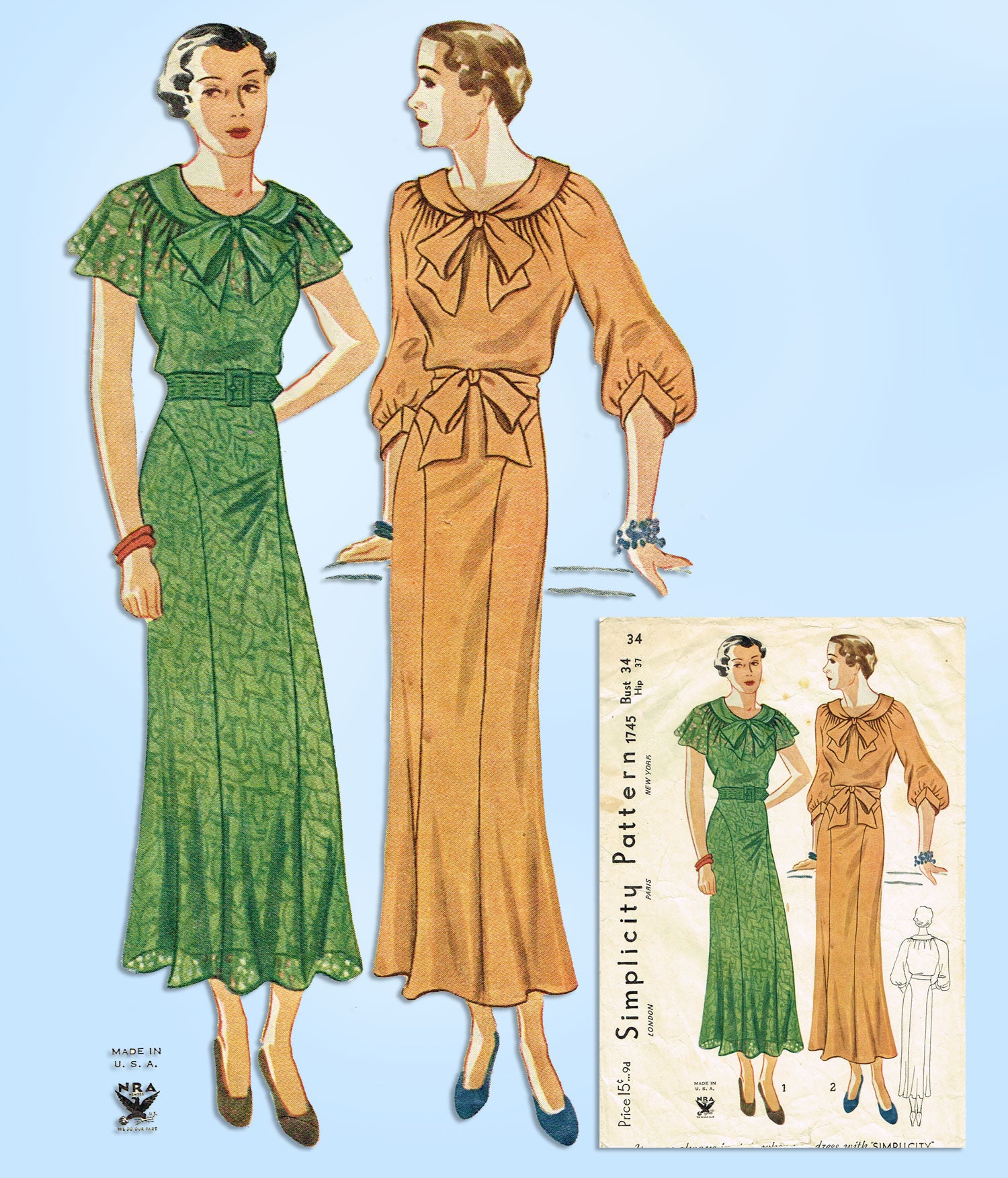 1930s Vintage Simplicity Sewing Pattern 1745 Misses Afternoon Dress Size 34 Bust