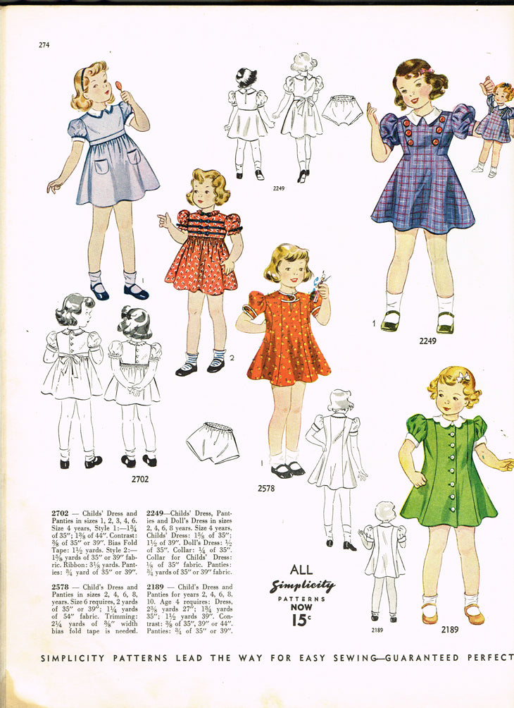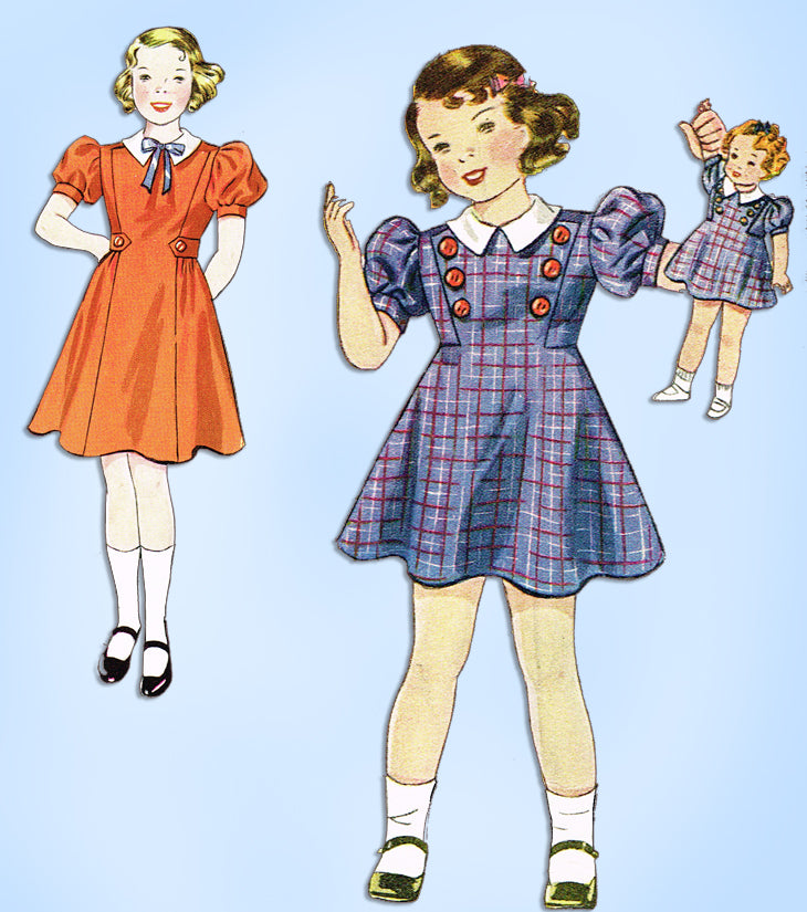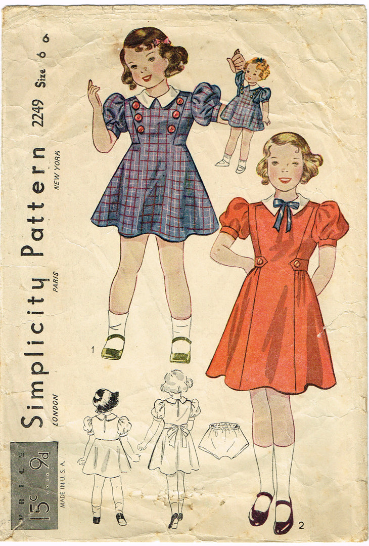 1930s Vintage Simplicity Sewing Pattern 2249 Toddler Girls Dress w Matching Doll