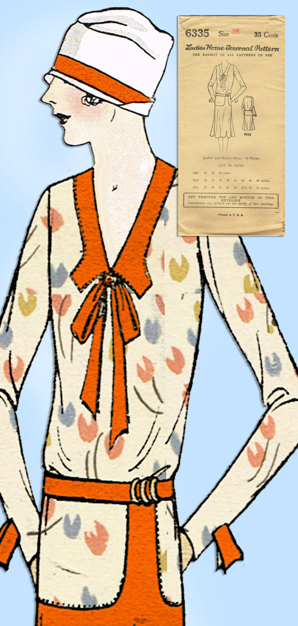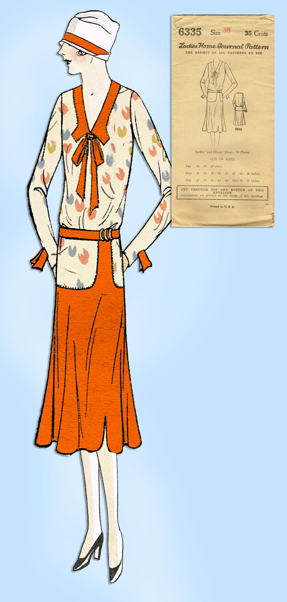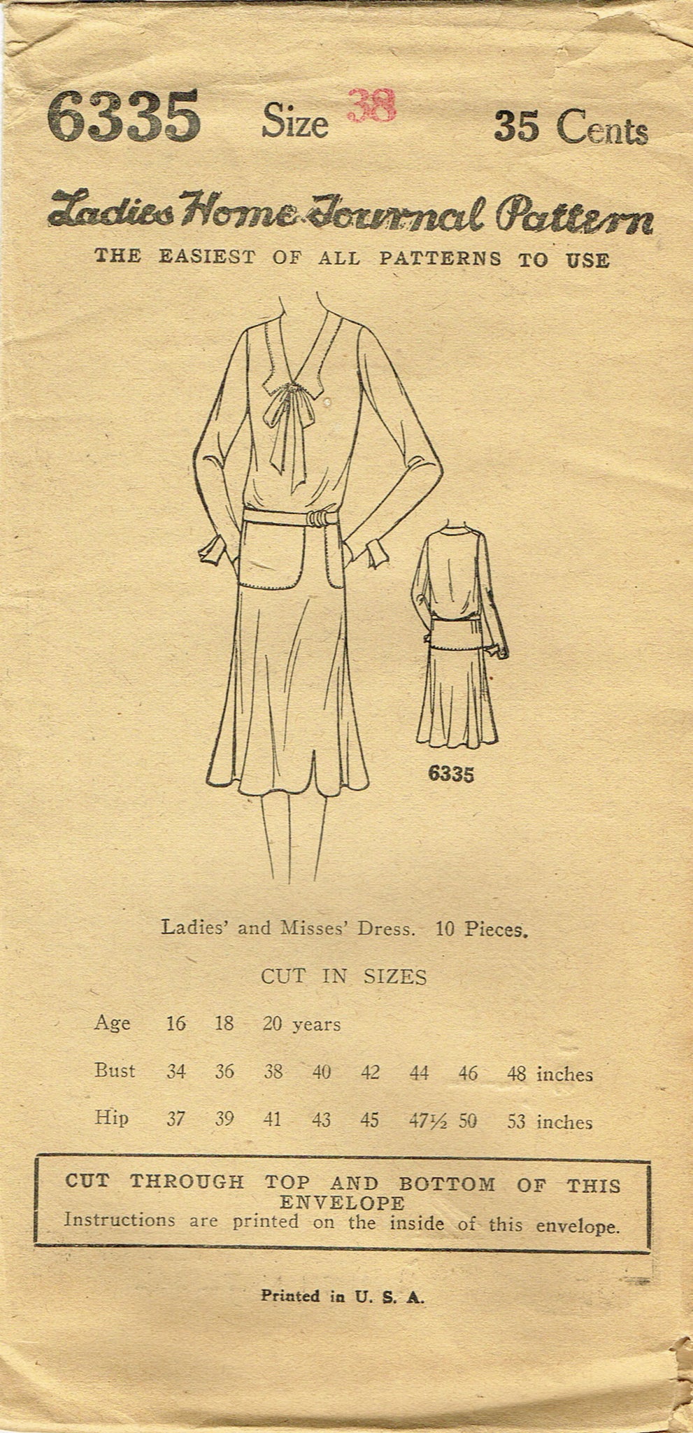 1930s VTG Ladies Home Journal Sewing Pattern 6335 Uncut Misses Flapper Dress 38B