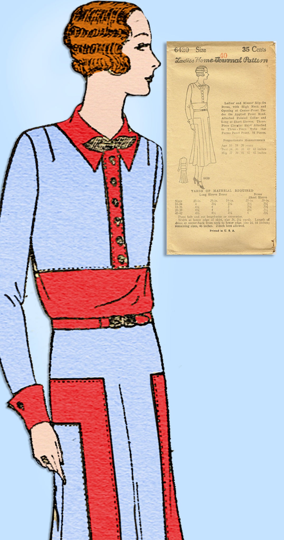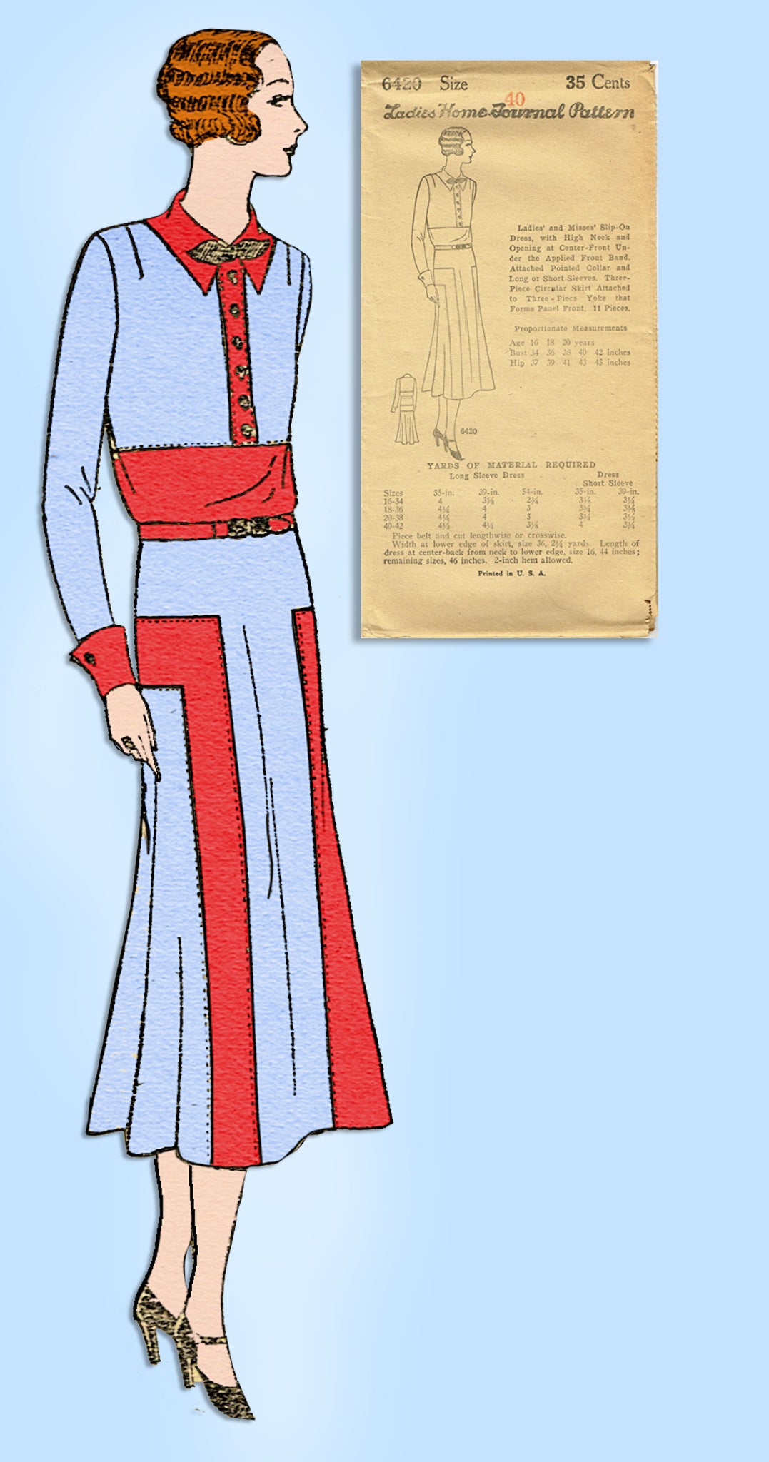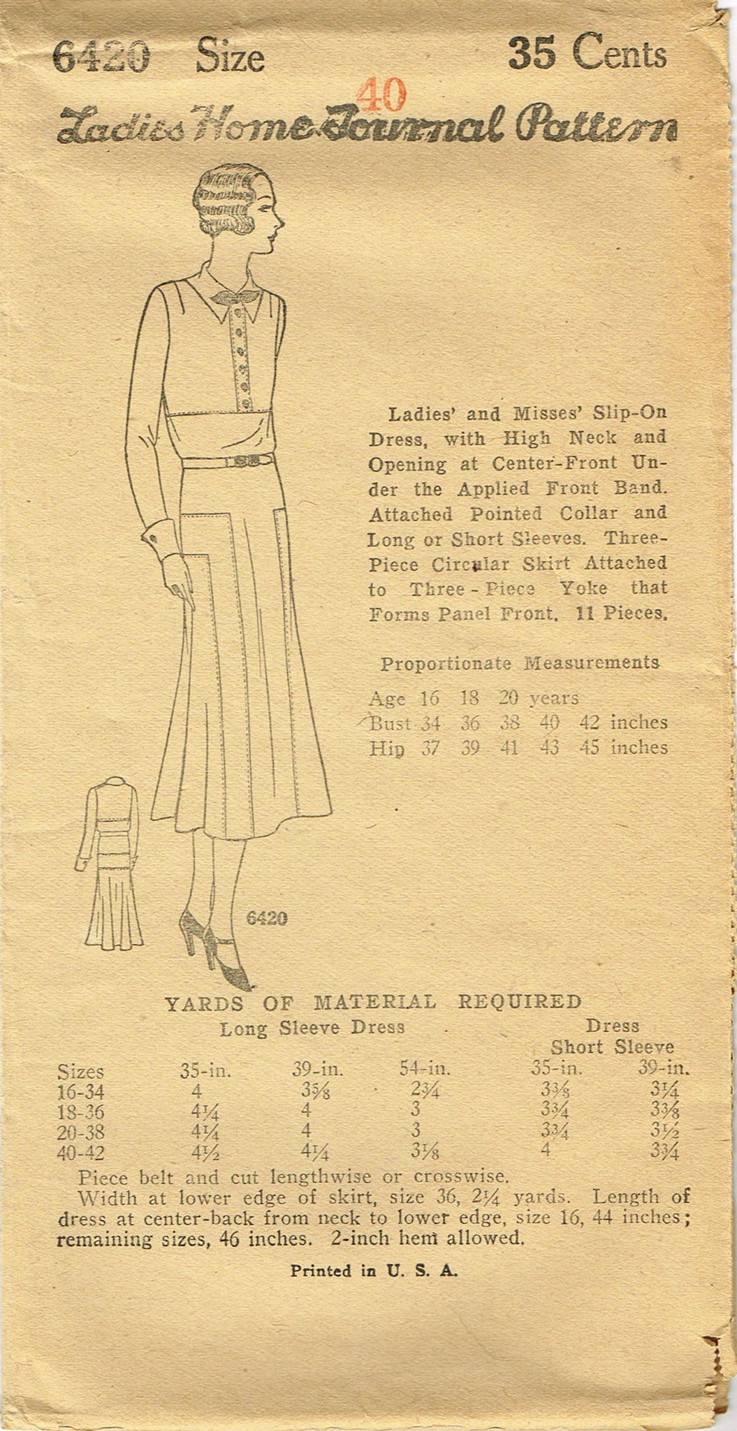 1930s VTG Ladies Home Journal Sewing Pattern 6420 Uncut Plus Size Dress 40 Bust