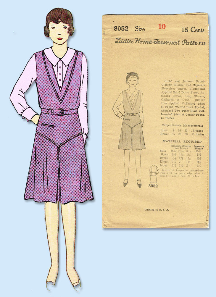 1930s VTG Ladies Home Journal Sewing Pattern 8052 Uncut Girls Jumper Dress Sz 10