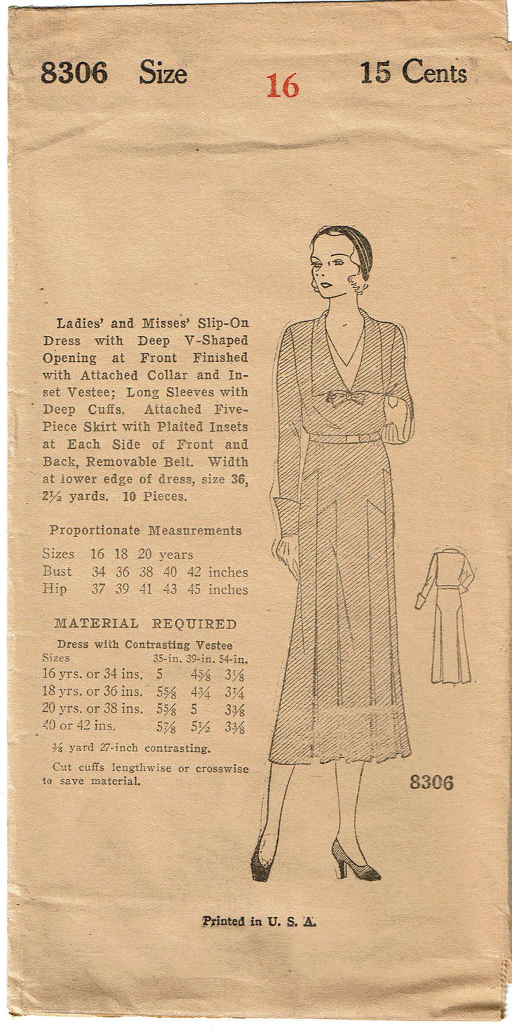 1930s VTG Ladies Home Journal Sewing Pattern 8306 Uncut Misses Street Dress 34 B