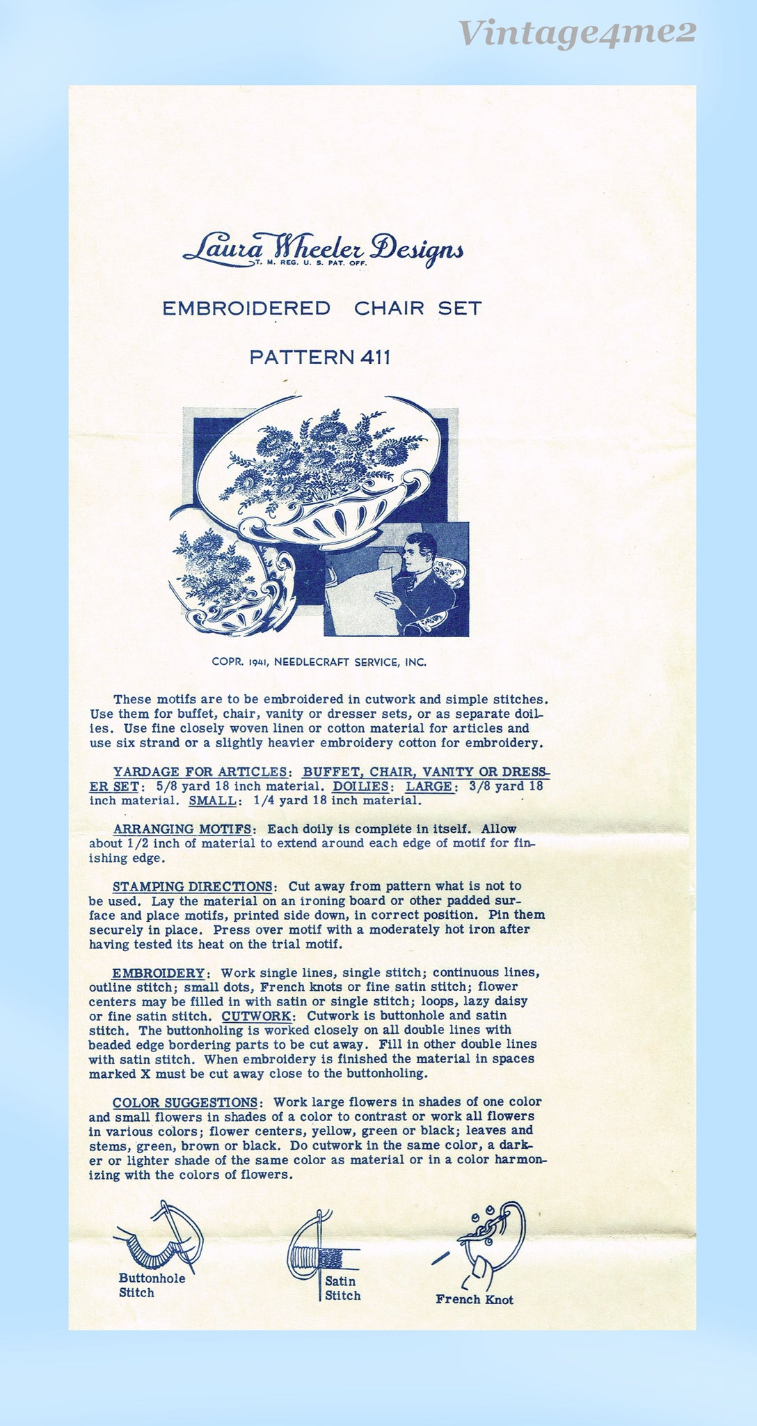 Laura Wheeler Mail Order Embroidery Transfer 411