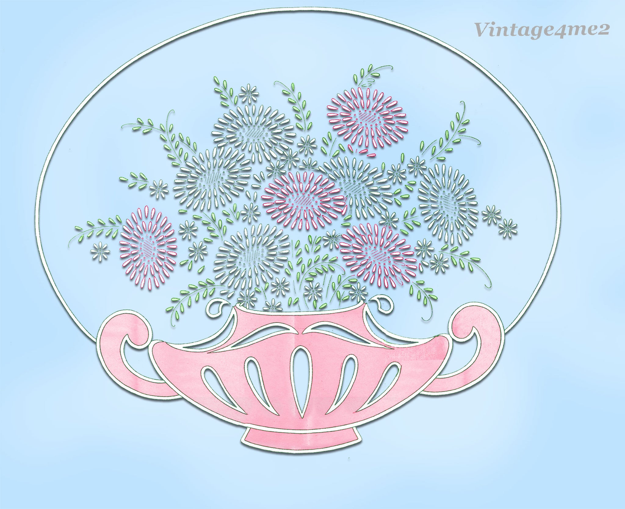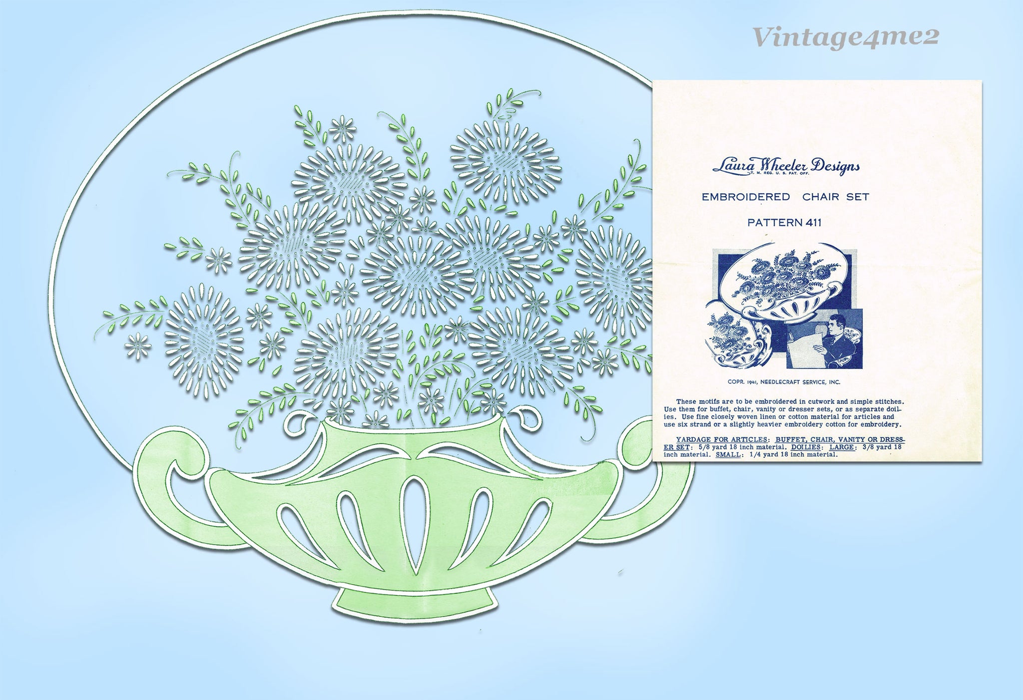 1940s Laura Wheeler Embroidery Transfer 411 Lazy Daisy Floral Basket Cutwork
