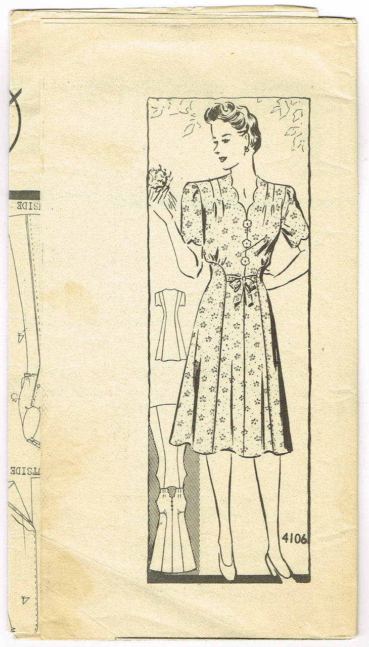 1940s Original Anne Adams Pattern 4106 Misses WWII Street Dress Size 34 Bust