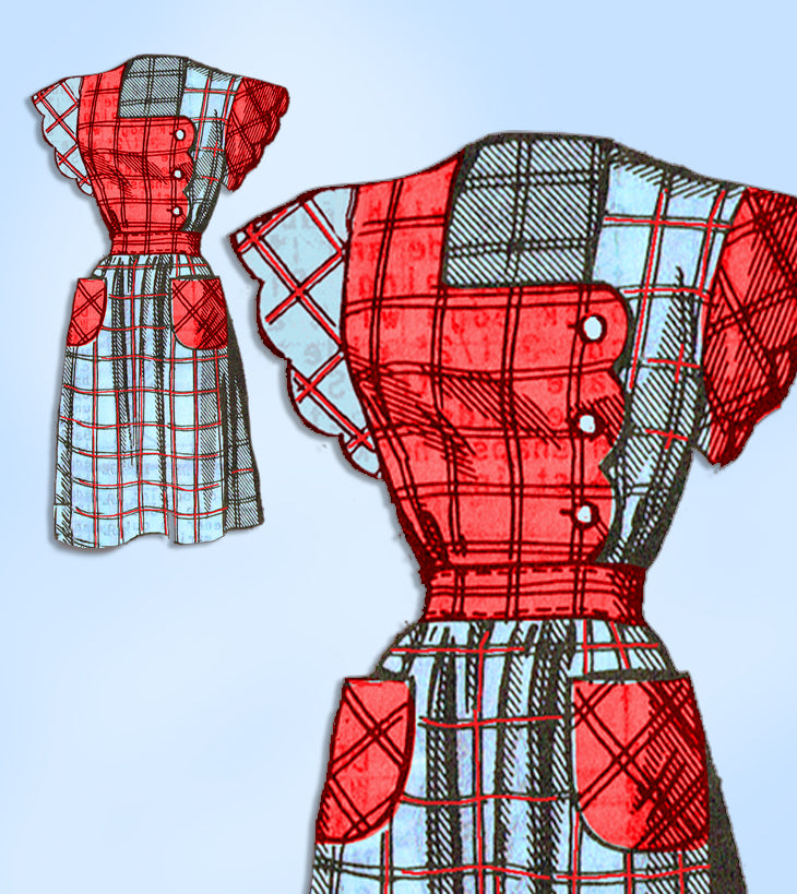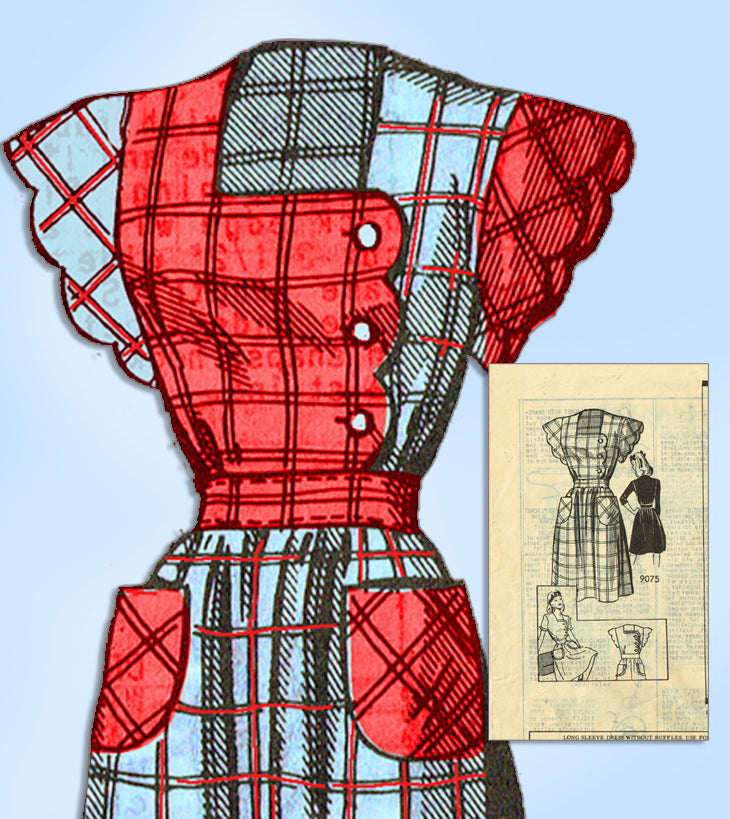 1940s Original Marian Martin Sewing Pattern 9075 Misses Scalloped Dress Sz 34 B