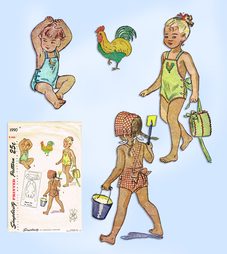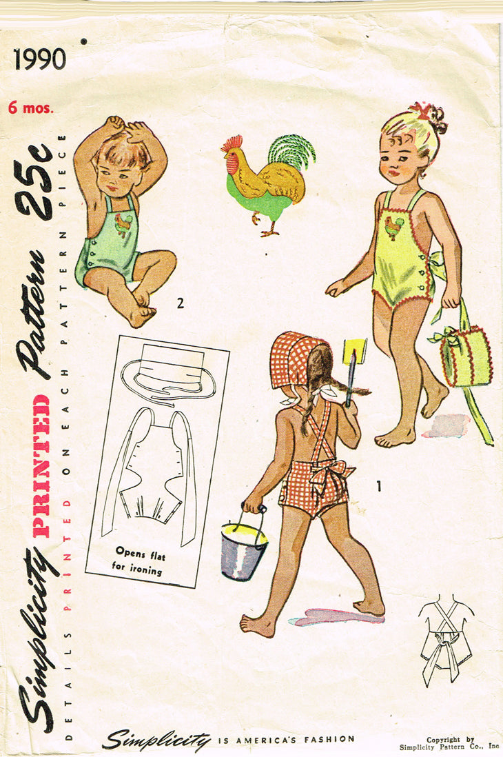 1940s Original Vintage Simplicity Sewing Pattern 1990 Baby Romper & Bonnet Sz 6 mos