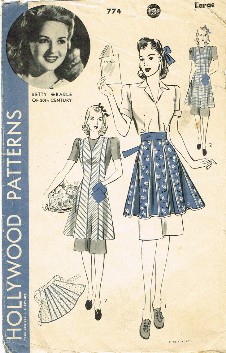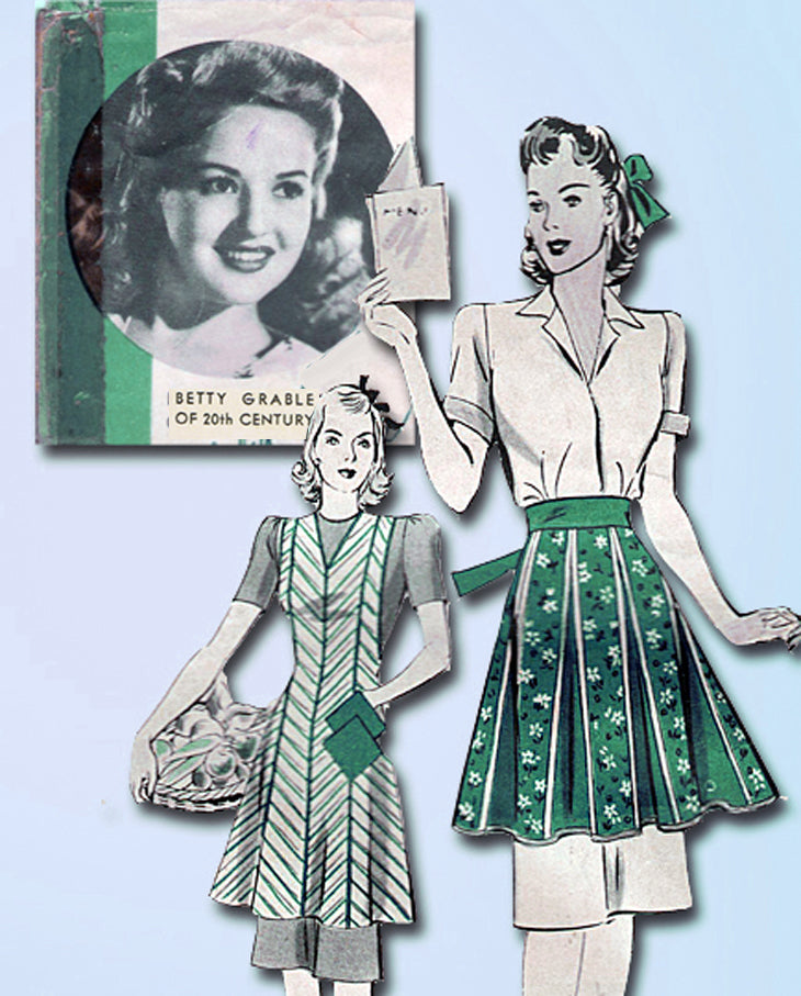 1940s Rare Hollywood Starlet Pattern 774 Betty Grable Apron Set 40 to 42 Bust