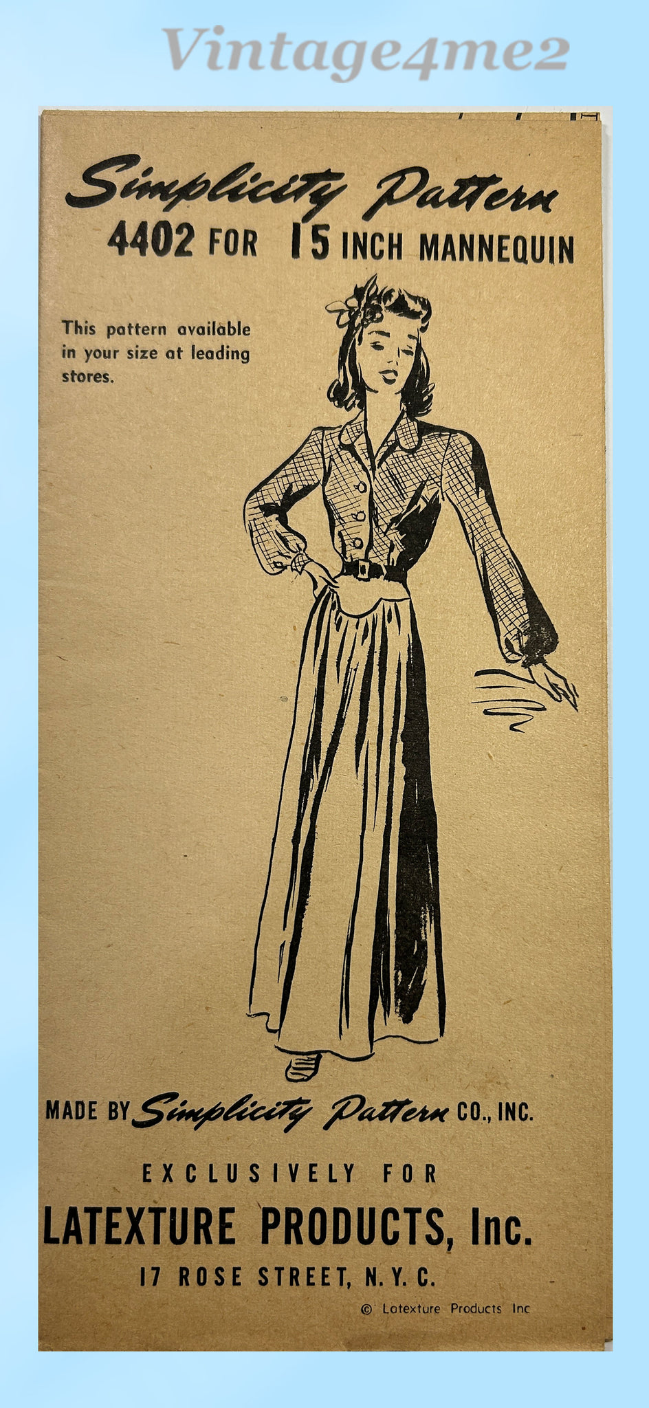 1940s Vintage Simplicity 4402 Latexure Manikin Mannequin Doll Clothes Pattern 15 Inch
