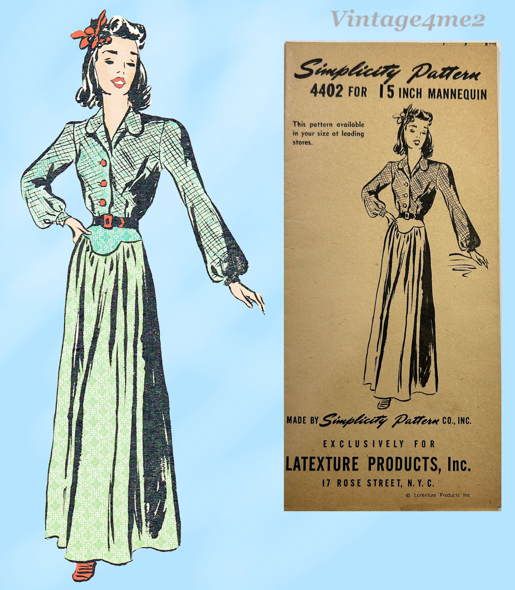 1940s Simplicity Sewing Pattern 4402 FF 15in Latexture Fashiondol Doll Clothes