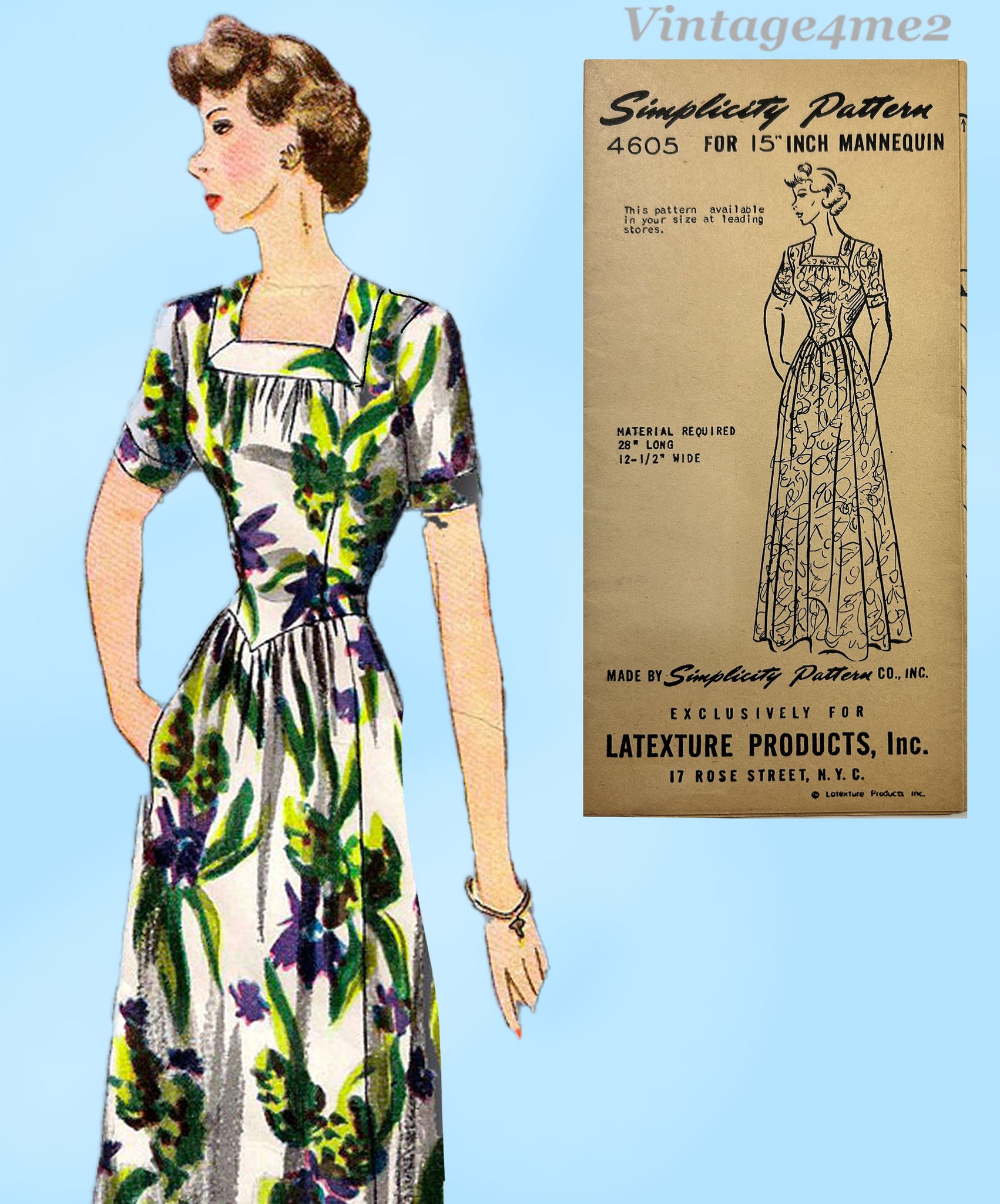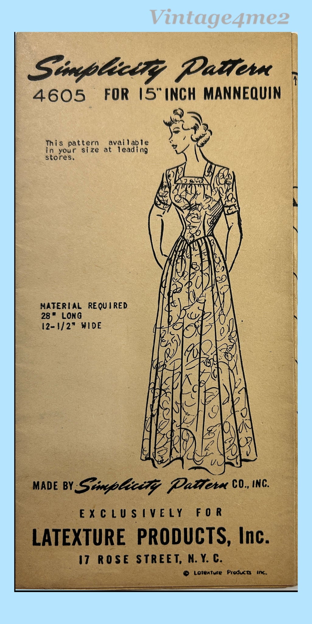 1940s Vintage Simplicity 4605 Latexure Manikin Mannequin Doll Clothes Pattern 15 Inch