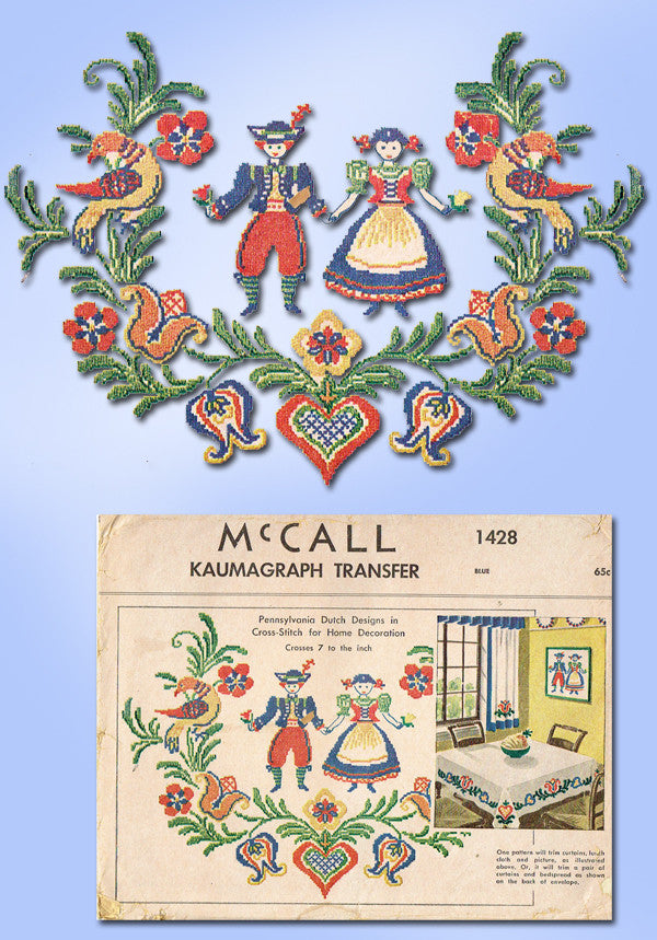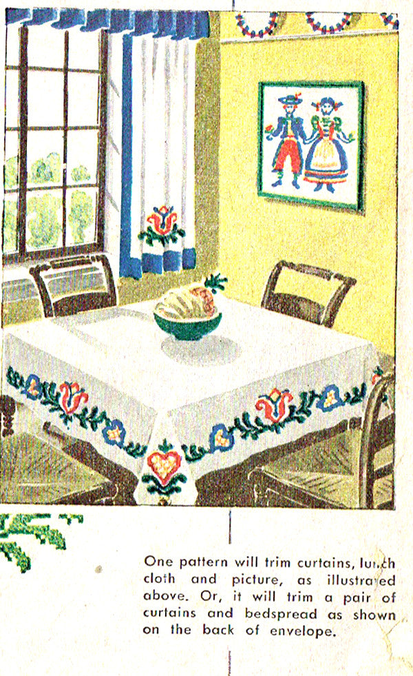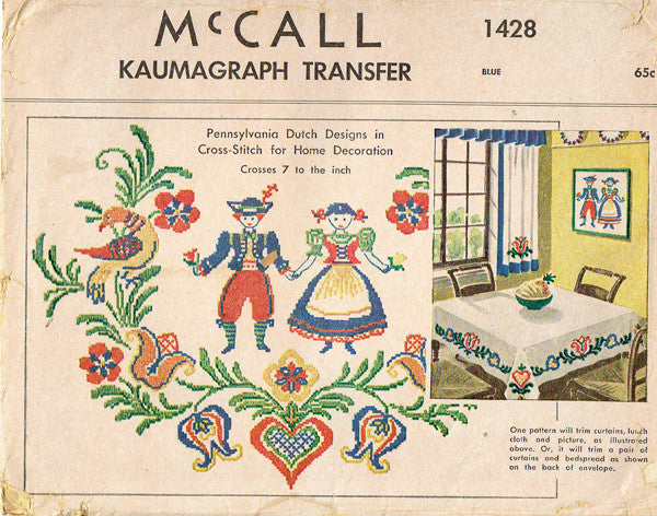 1940s Uncut McCall Embroidery Transfer 1428 Pennsylvania Dutch Kitchen Motifs