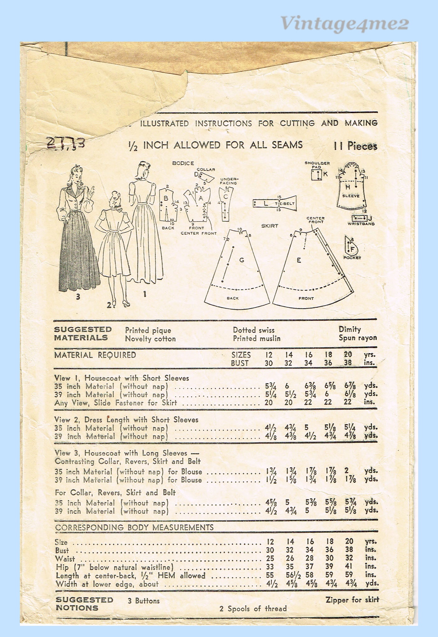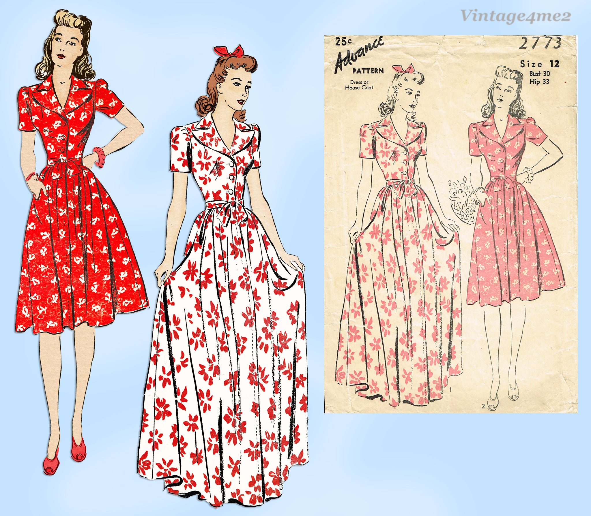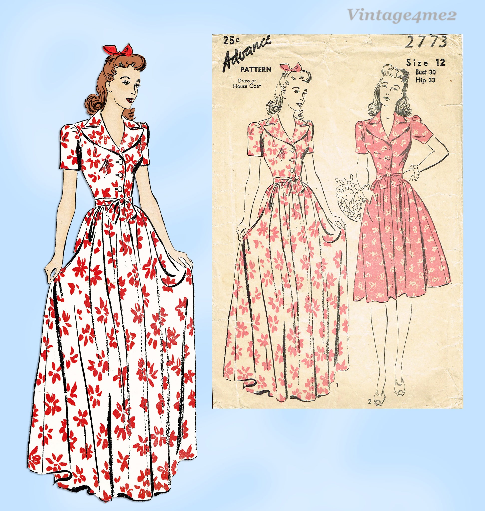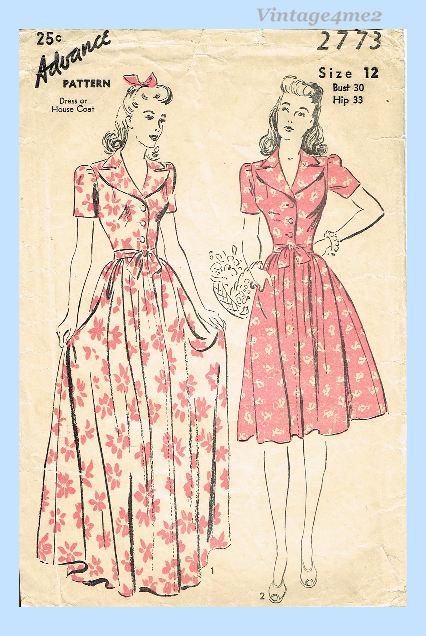1940s Vintage Advance Sewing Pattern 2773 Misses WWII Housecoat Size 30 Bust