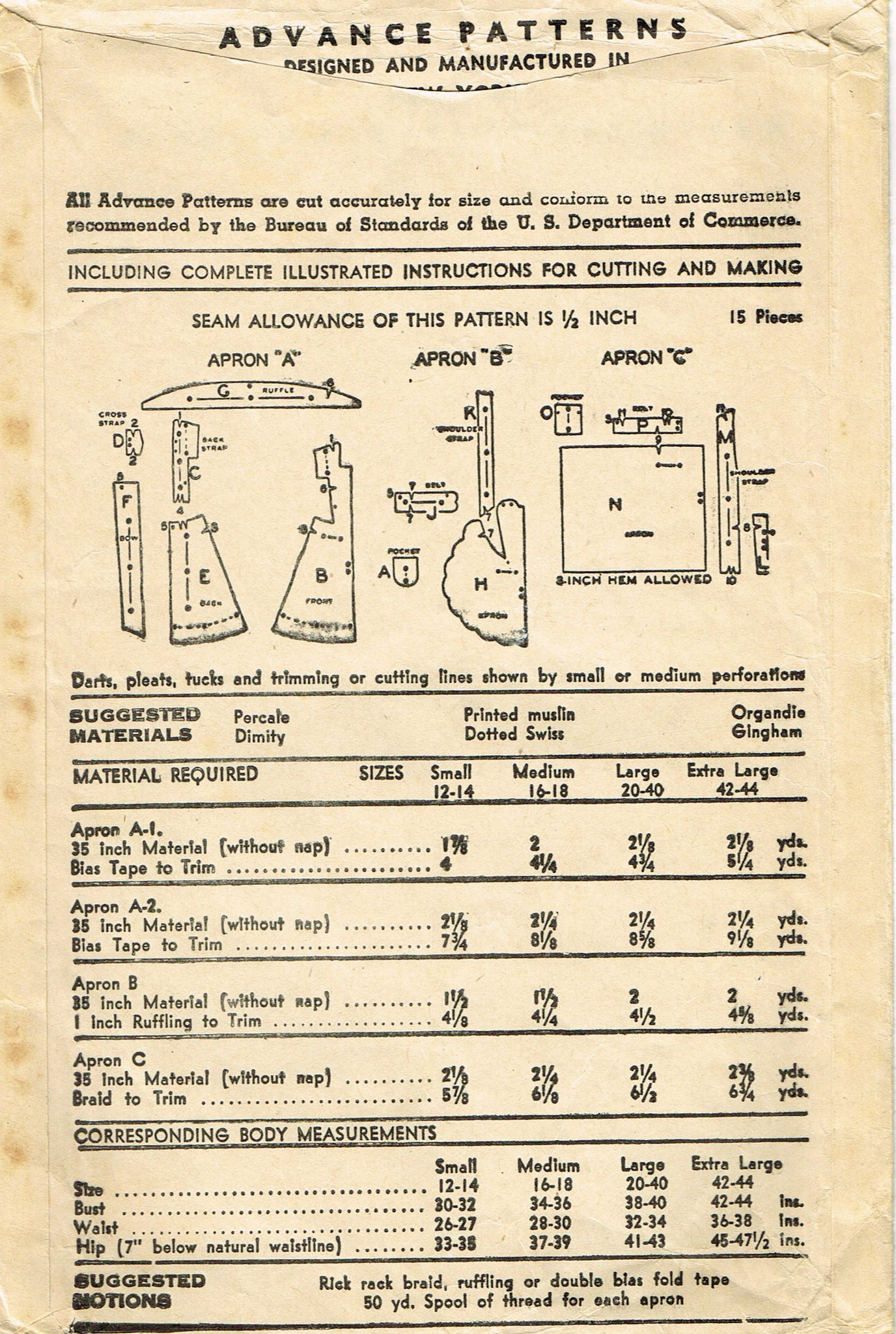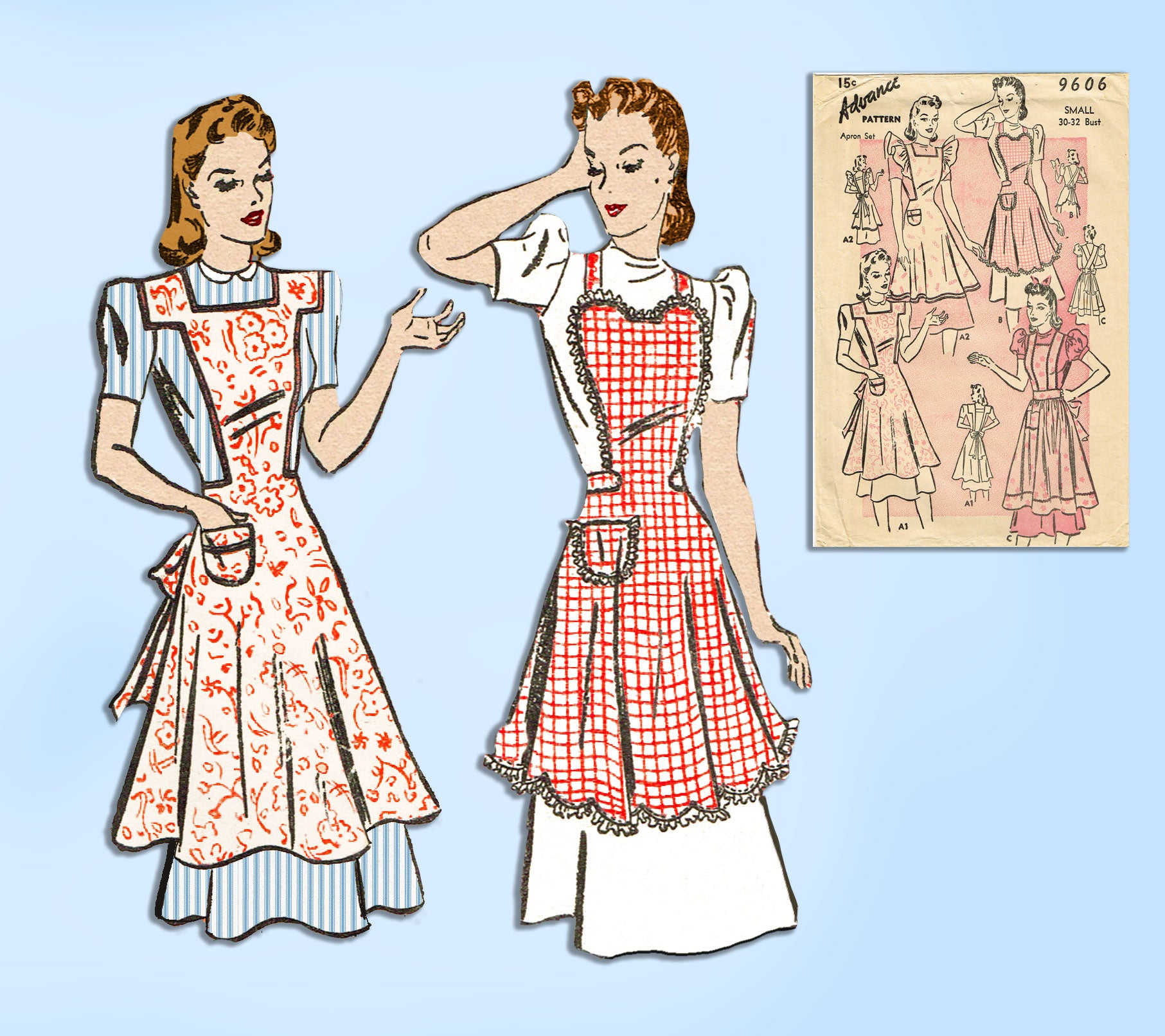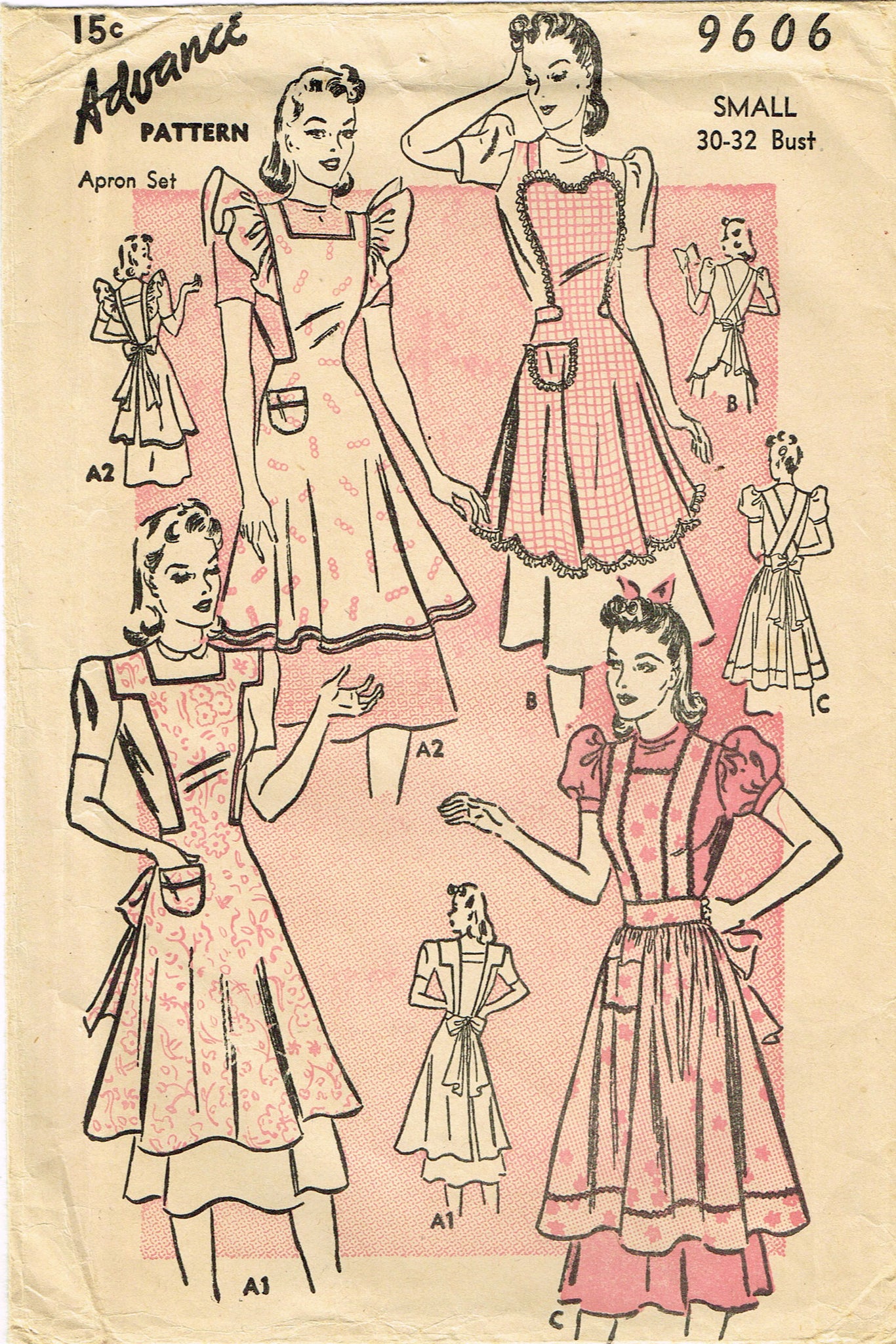 1940s Vintage Advance Sewing Pattern 9606 Misses WWII Full Bib Apron Size Small