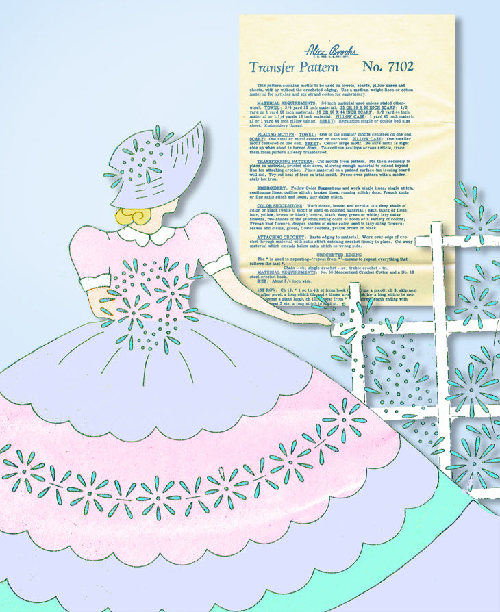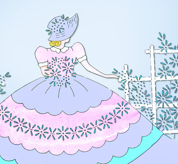 1940s Vintage Alice Brooks Embroidery Transfer 7102 Uncut Garden Gal Pillowcases