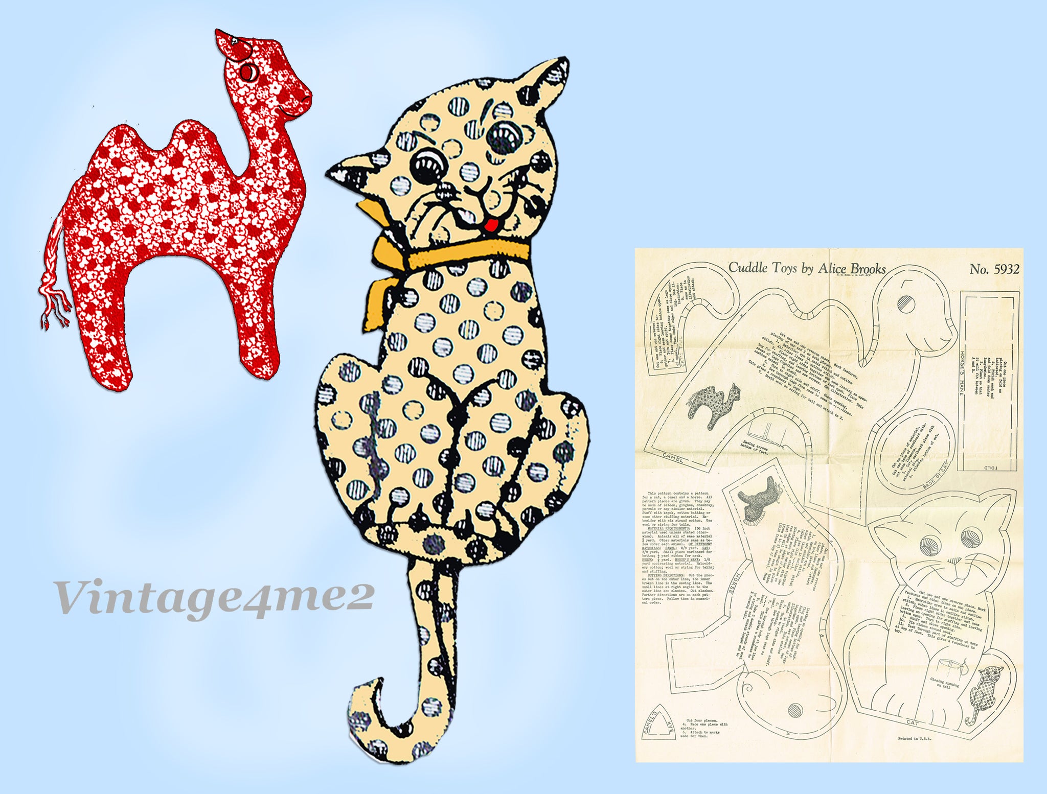 1940s Vintage Alice Brooks Transfer Pattern 5932 Uncut Stuffed Animal Dolls