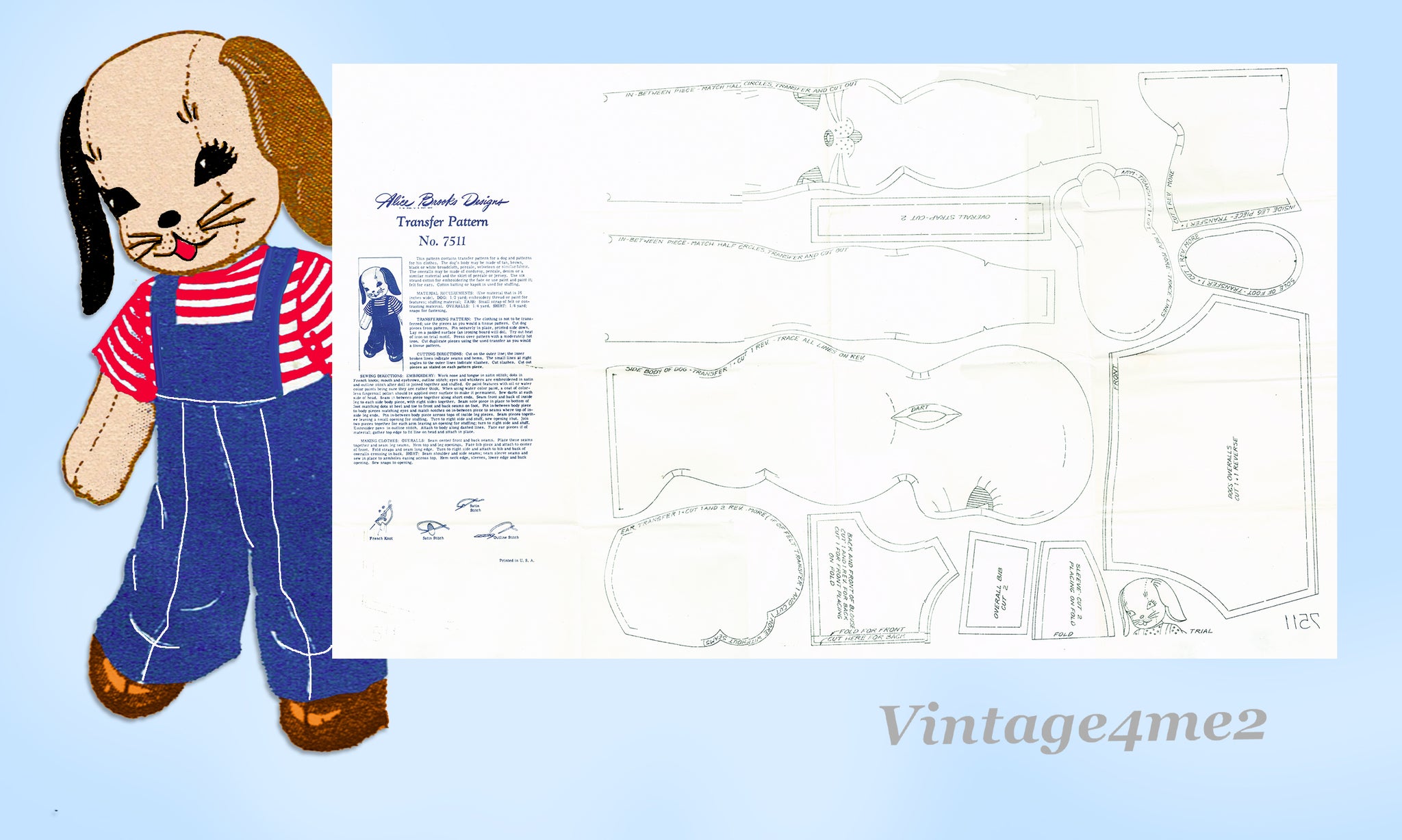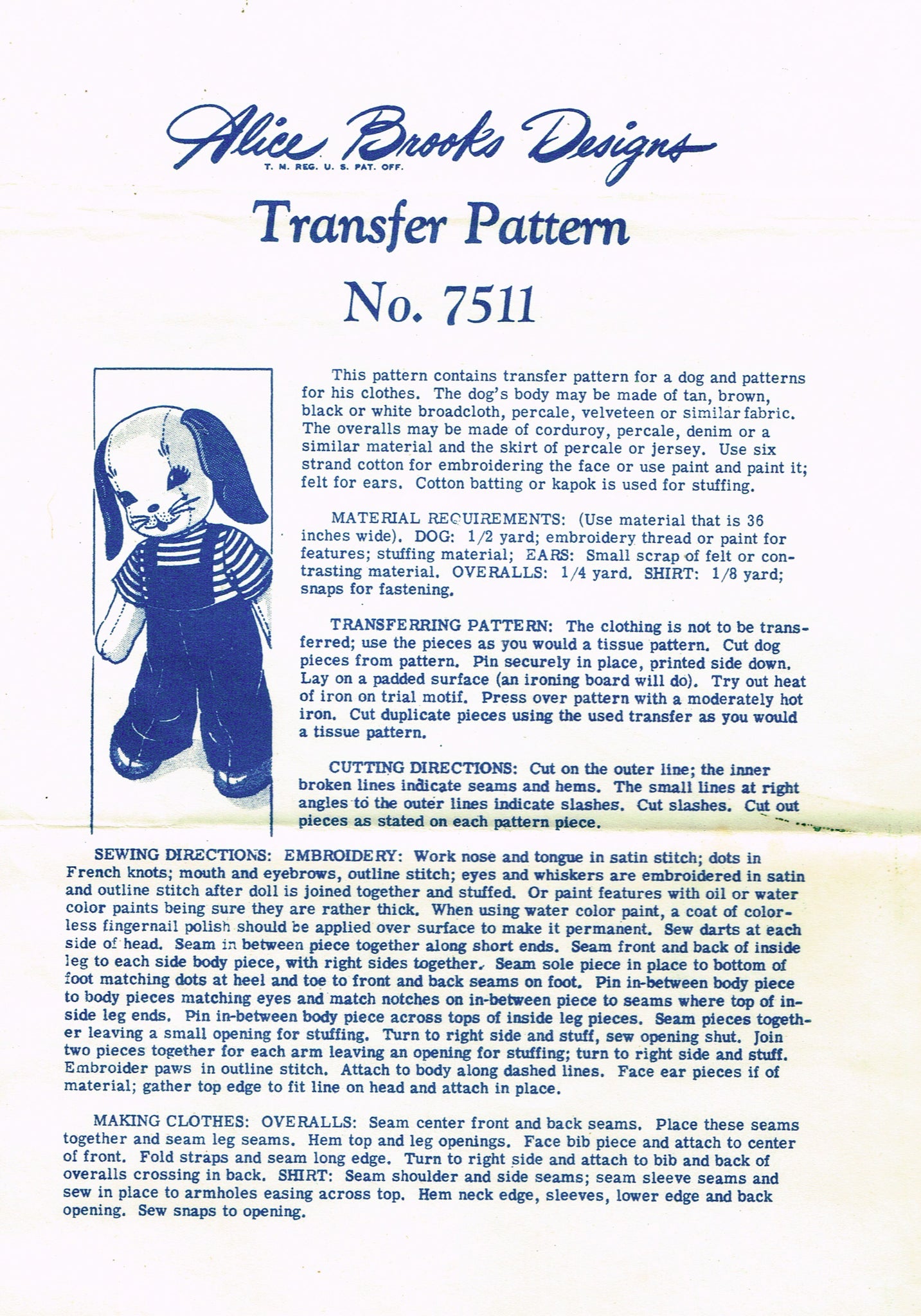 1940s Vintage Alice Brooks Transfer Pattern 7511 Uncut Stuffed Puppy Toy Doll