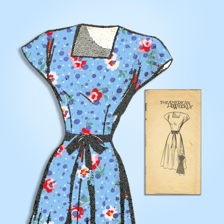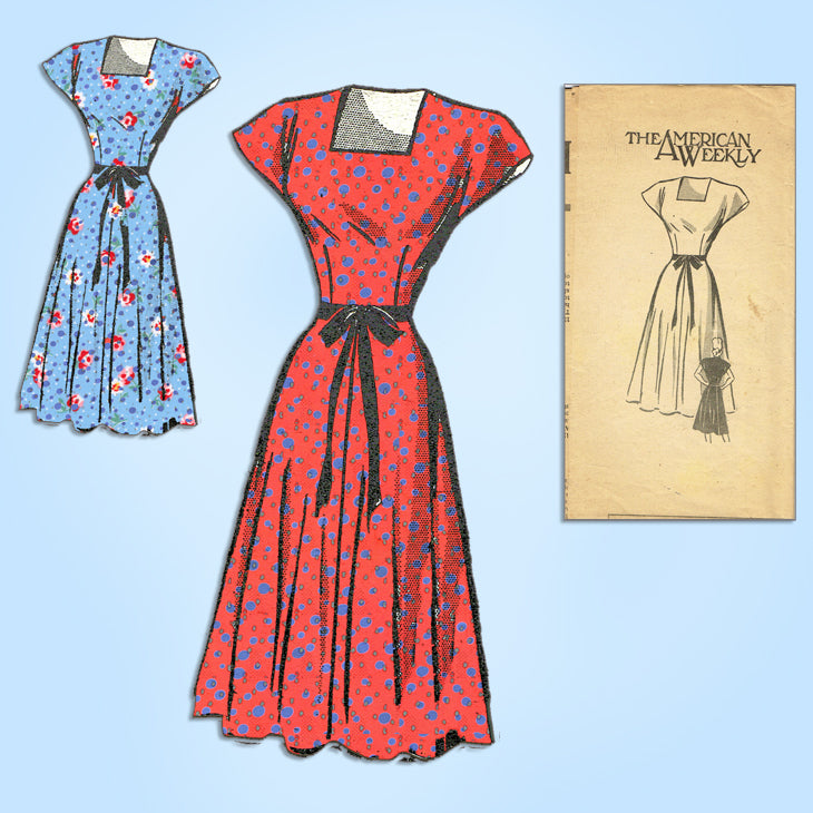 1940s Vintage American Weekly Sewing Pattern 3873 Simple Misses Dress Sz 36 Bust