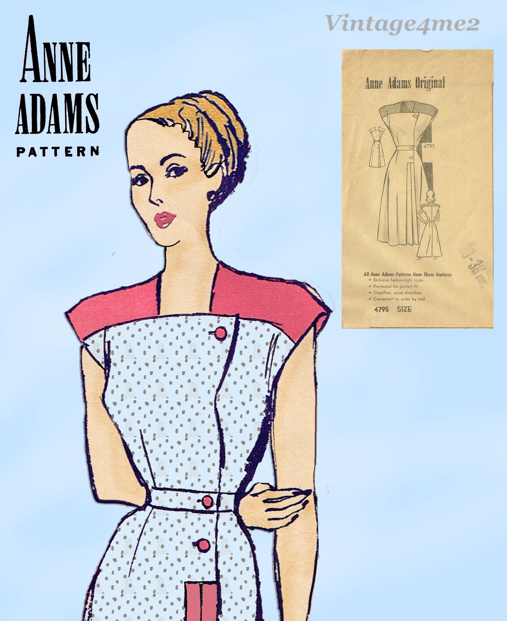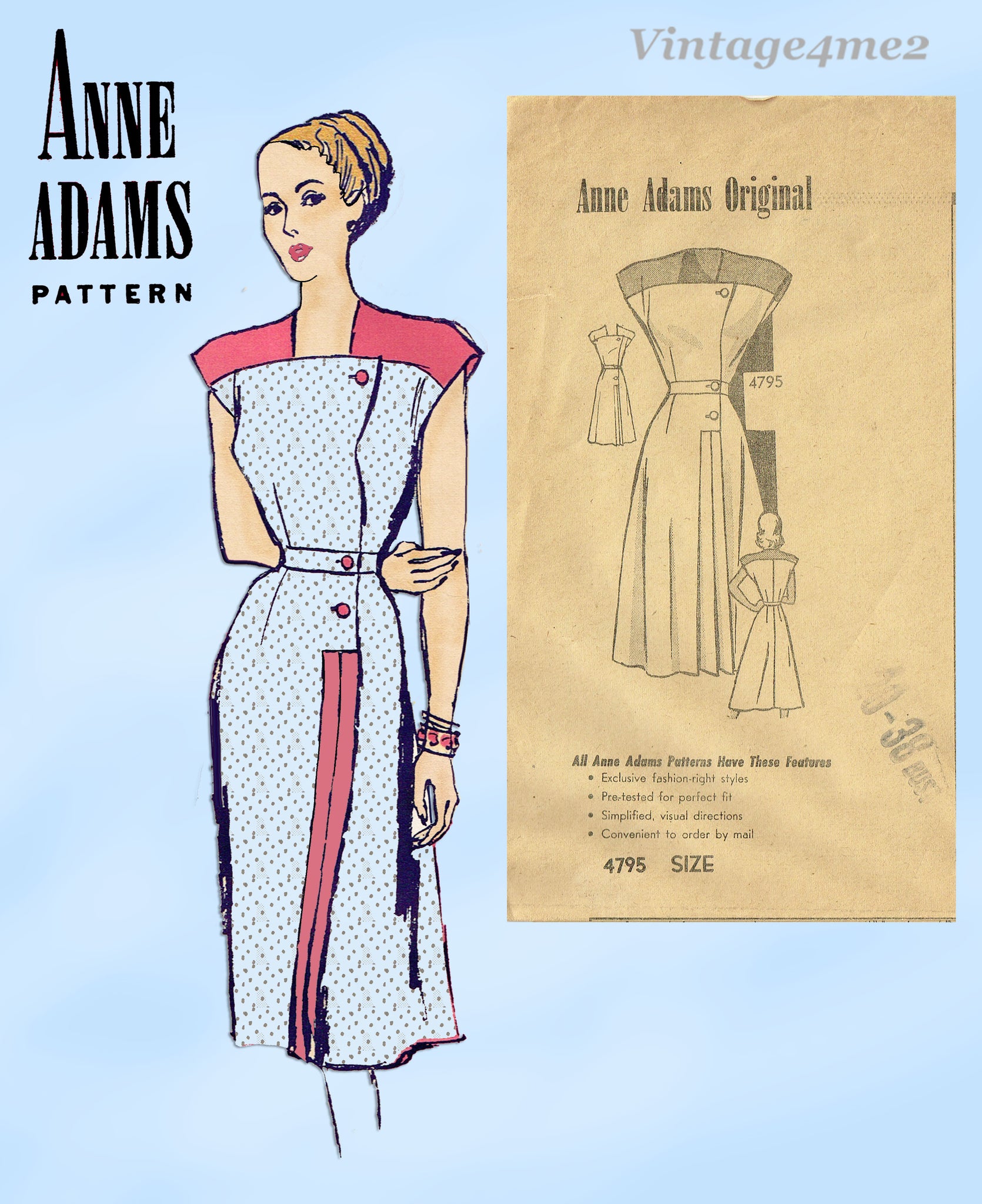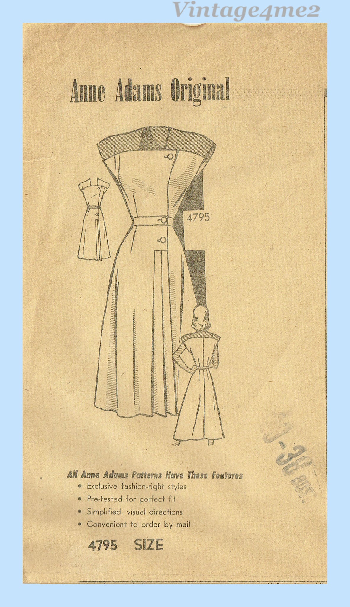 1940s Vintage Anne Adams Pattern 4795 Stunning Misses Street Dress Sz 38 Bust