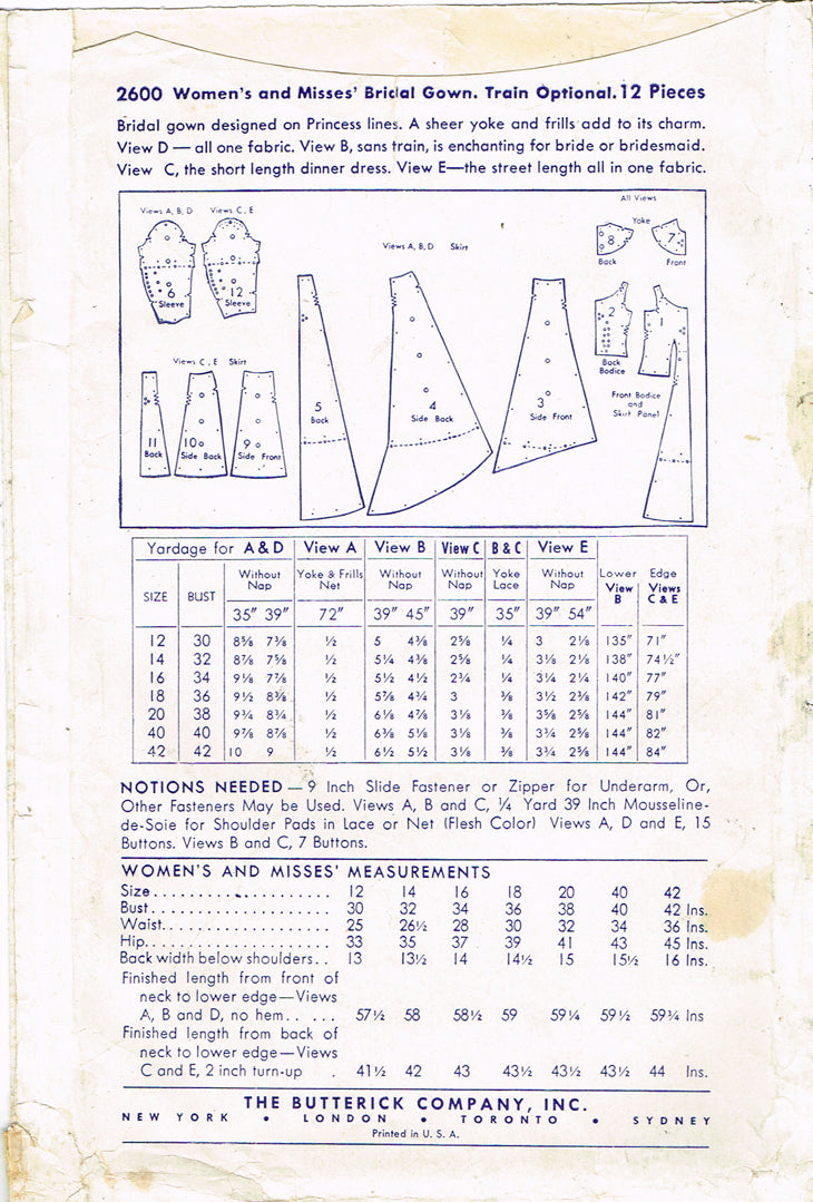 Gorgeous and Rare WWII Wedding Gown Pattern