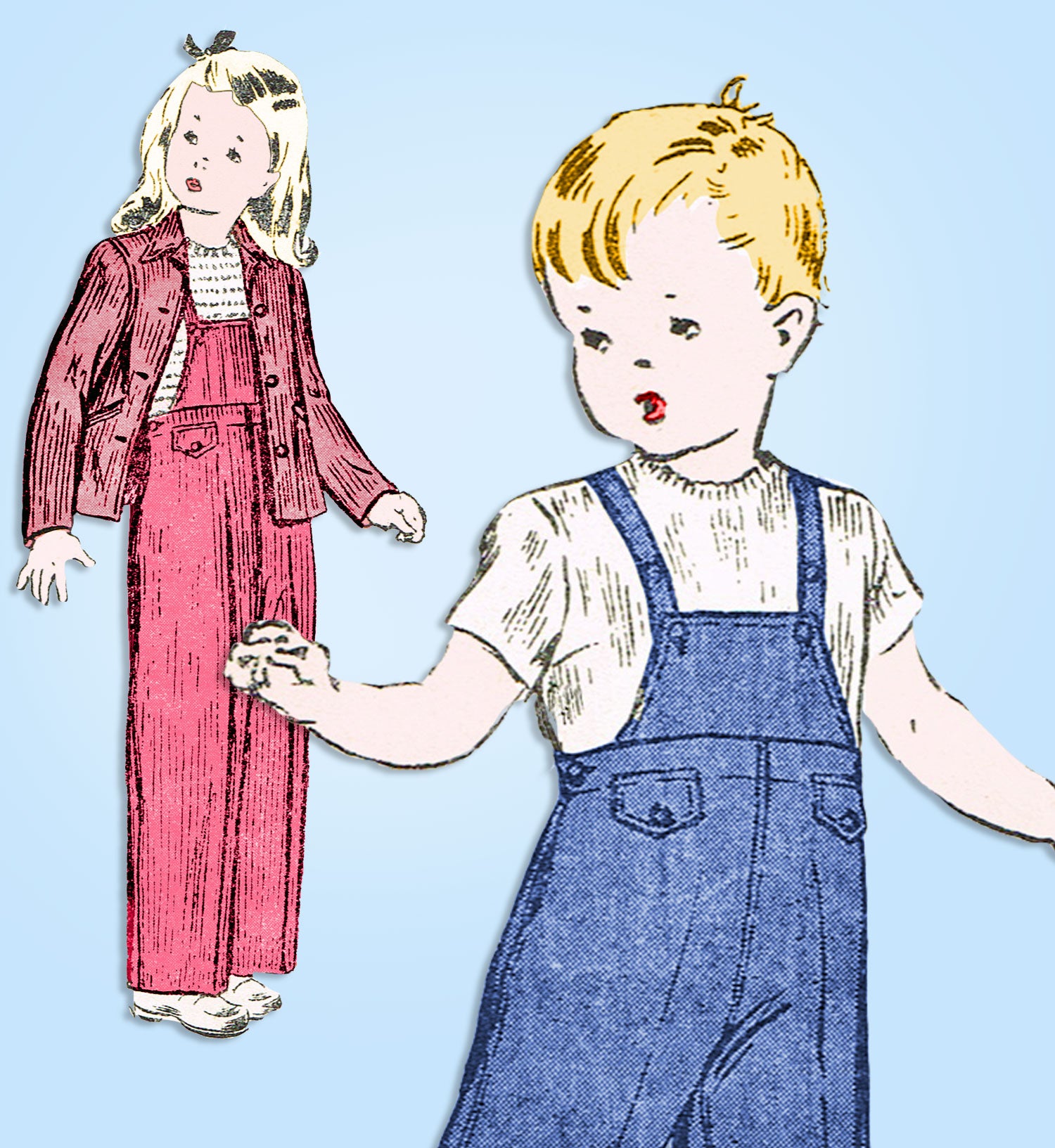 1940s Vintage Butterick Sewing Pattern 2744 Uncut Toddler Overalls & Jacket Sz 4