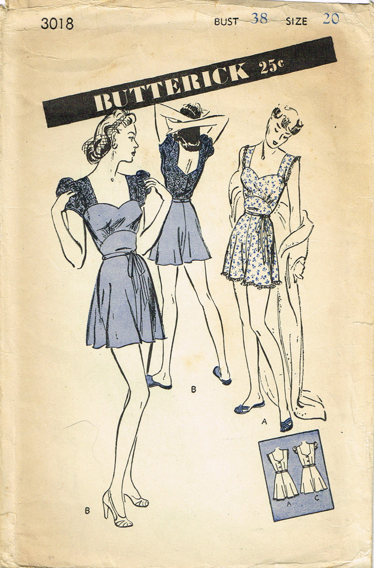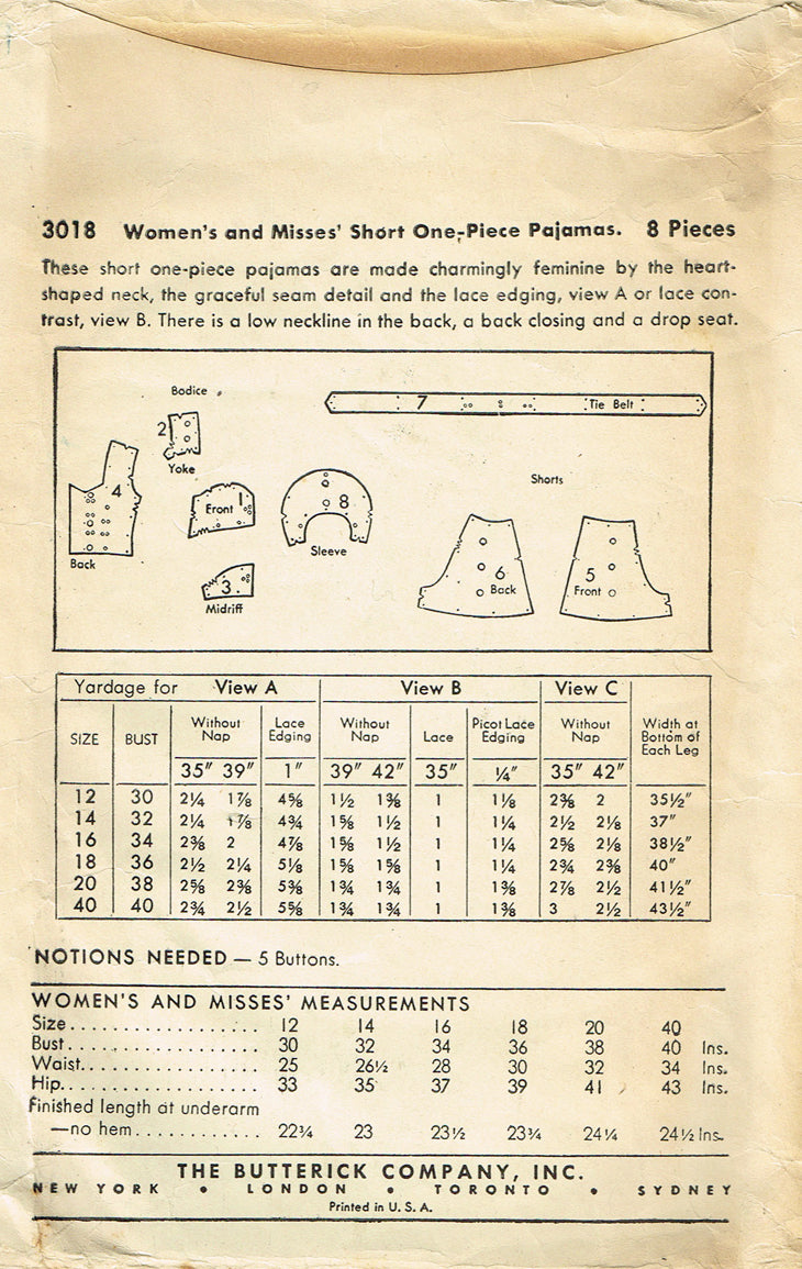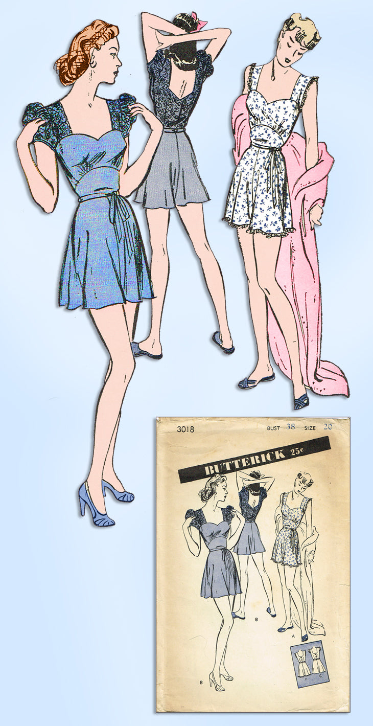 1940s Vintage Butterick Sewing Pattern 3018 Misses WWII Pajama Romper Sz 38 Bust