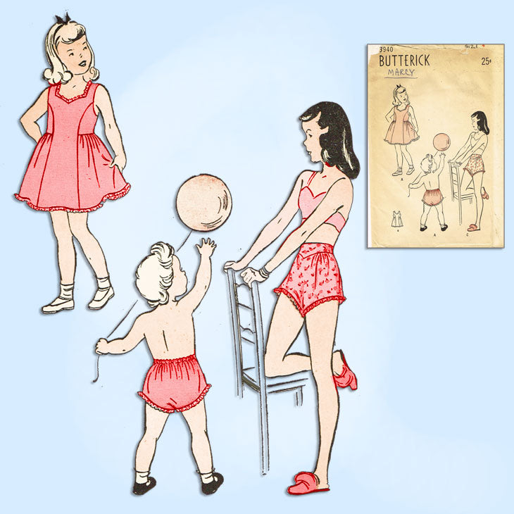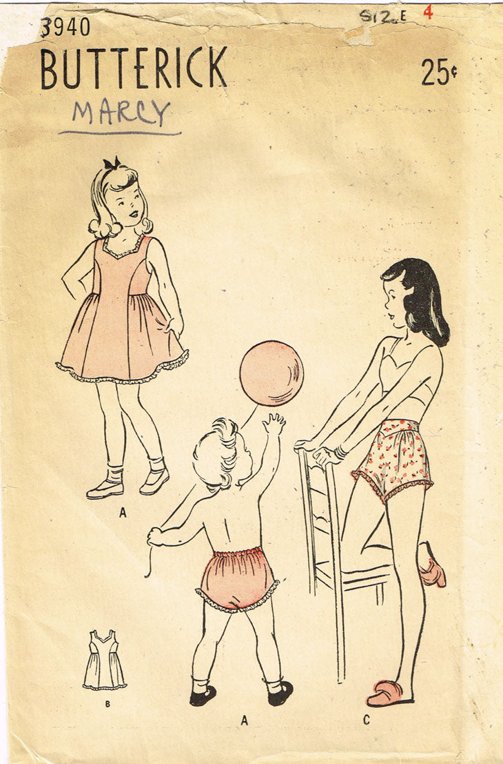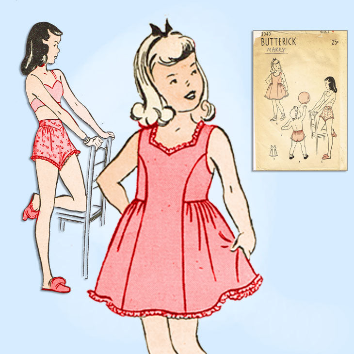 1940s Vintage Butterick Sewing Pattern 3940 Uncut Toddler Girls Slip & Panties 4