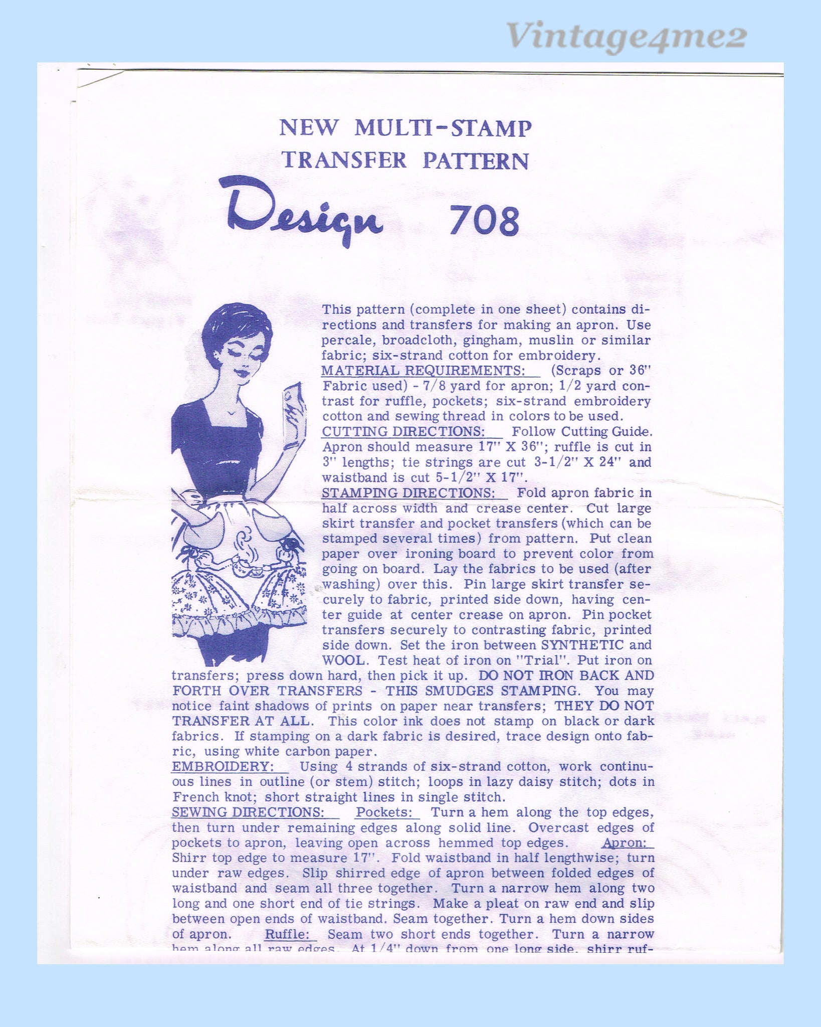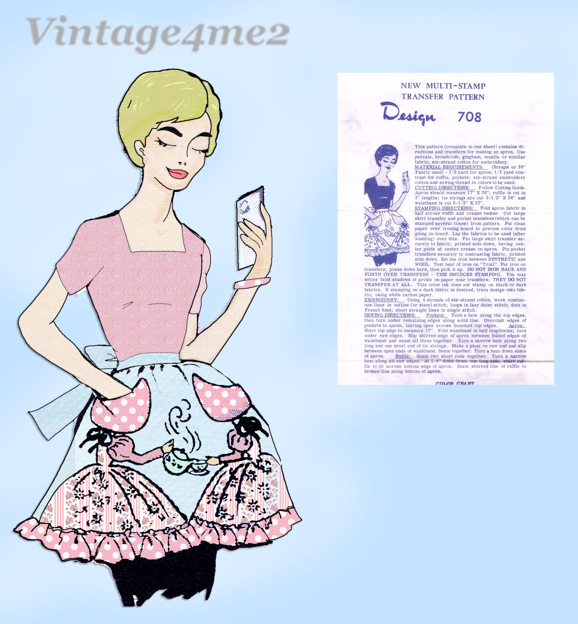 1950s Vintage Design Mail Order Pattern 708 Uncut Sunbonnet Sue Cocktail Apron