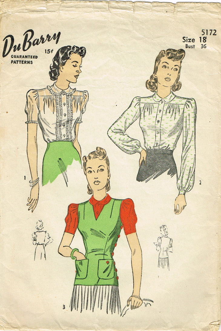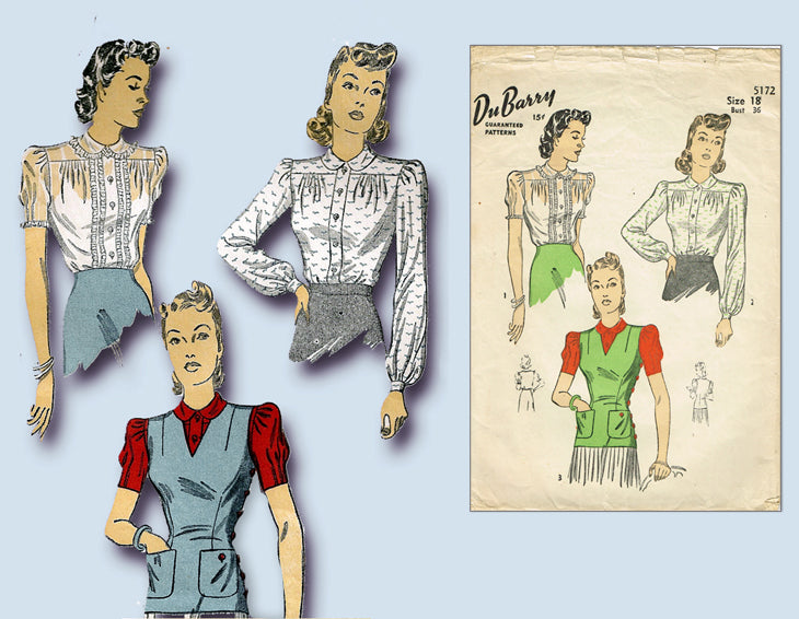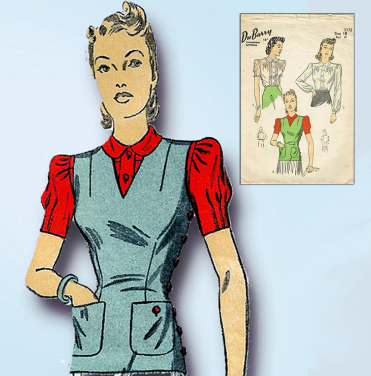 1940s Vintage Du Barry Sewing Pattern 5172 Uncut WWII Misses Blouse & Vest 36 B