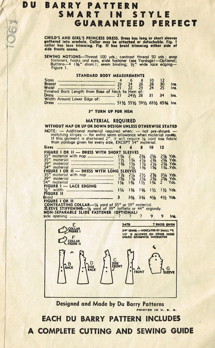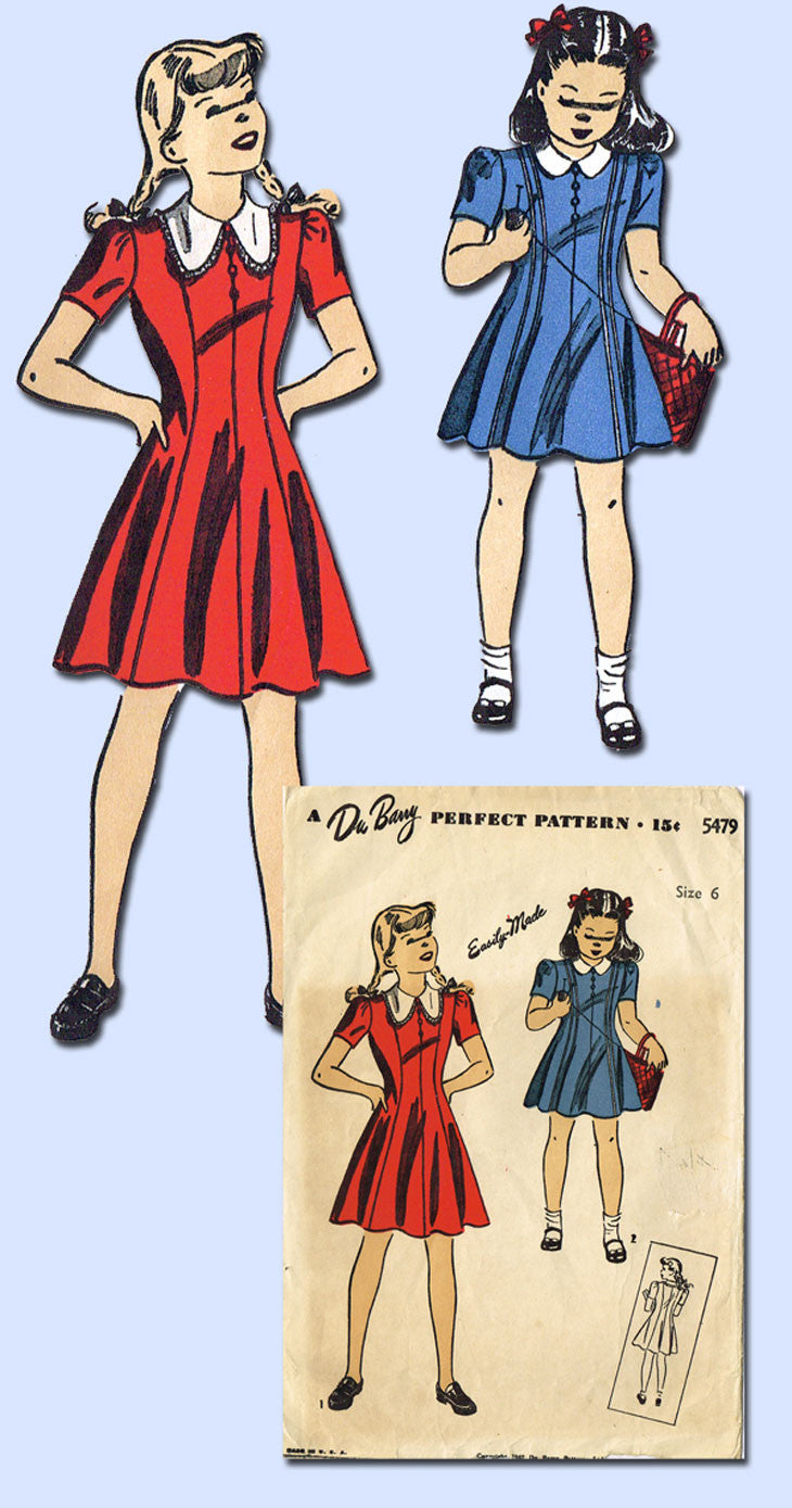 1940s Vintage Du Barry Sewing Pattern 5479 Easy WWII Toddler Girls Dress Sz 6 FF
