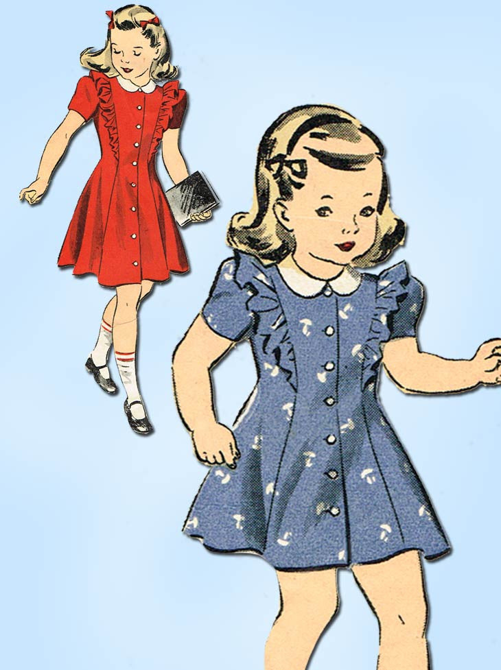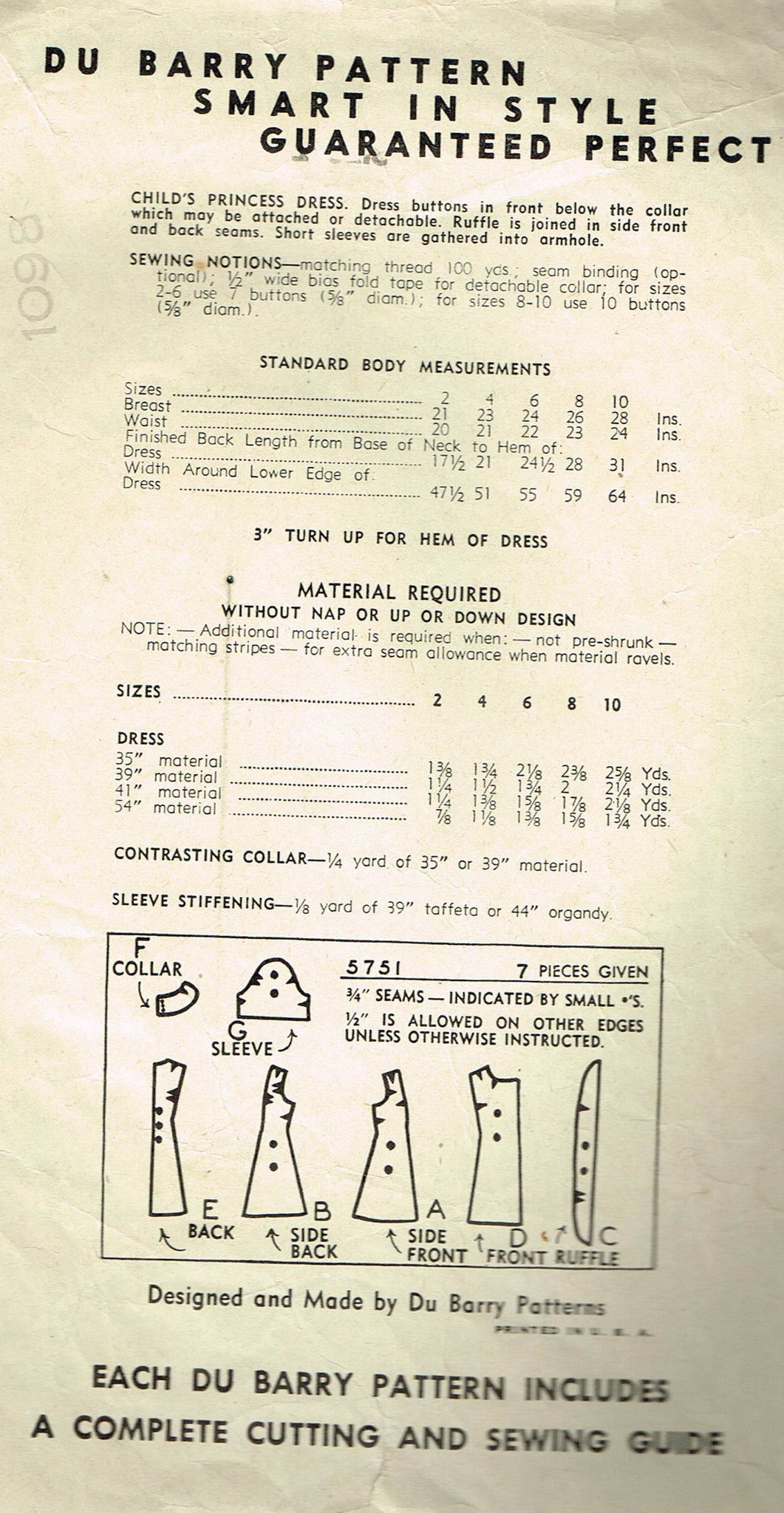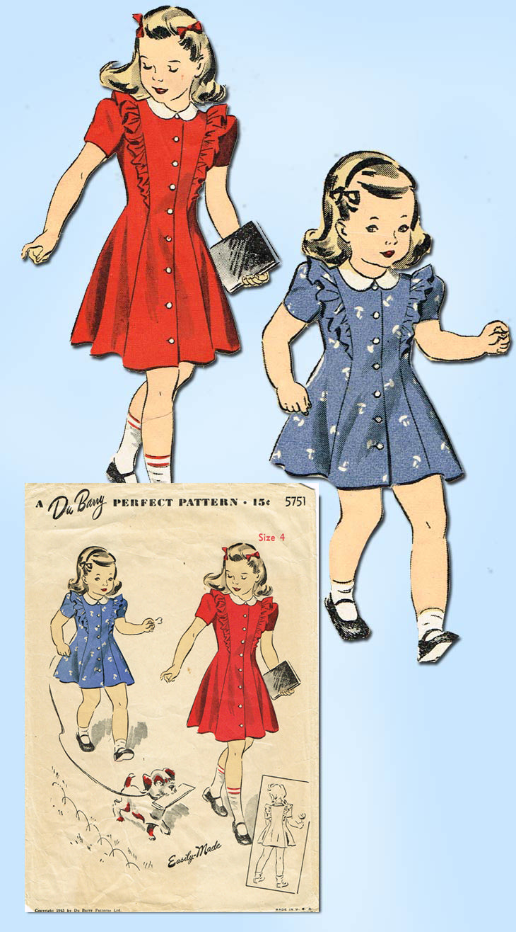 1940s Vintage Du Barry Sewing Pattern 5751 WWII Toddler Girls Princess Dress Sz4