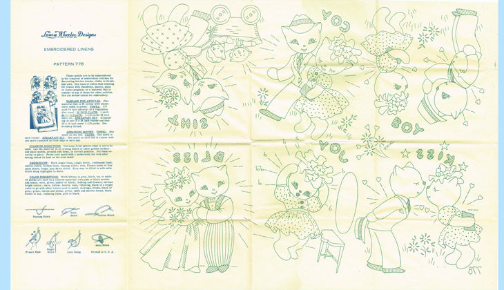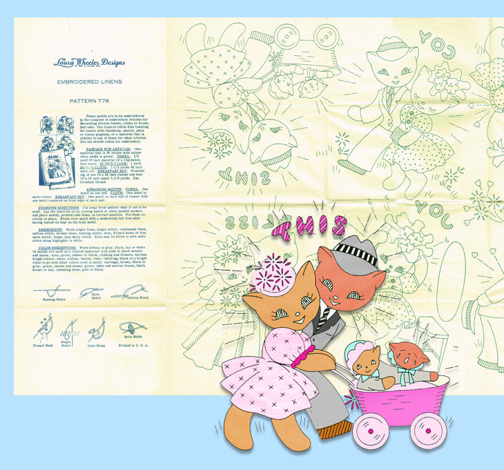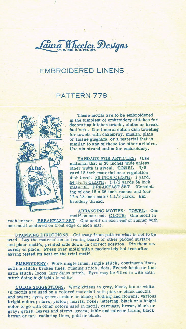 1940s Vintage Laura Wheeler Embroidery Transfer 778 Uncut Kitten Romance Motifs