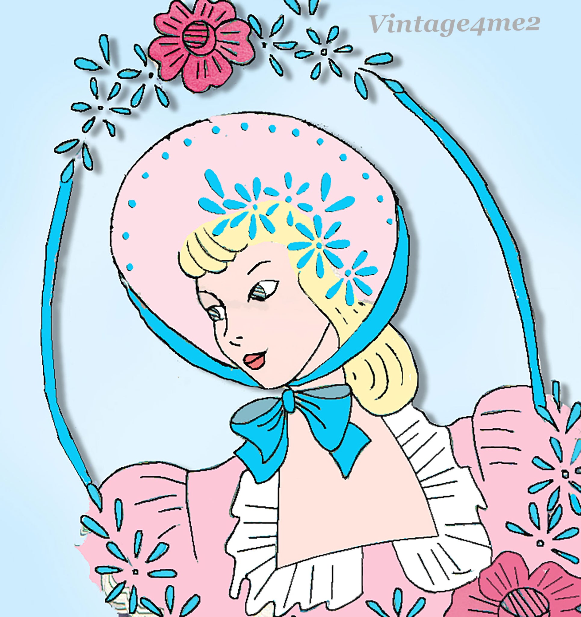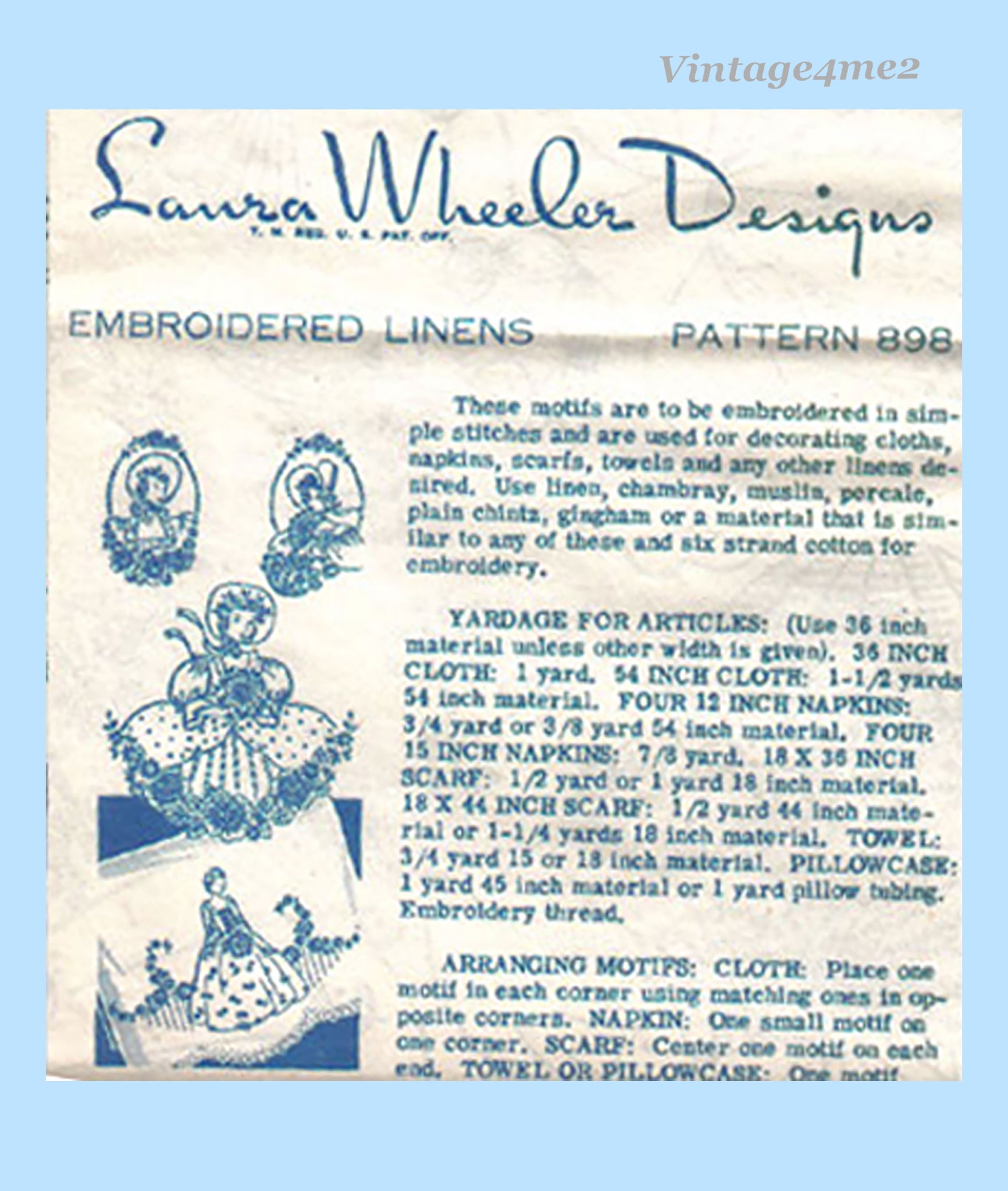 This is a sweetie of a vintage transfer. This Laura Wheeler transfer is from the 1940s. It has a charming and popular garden girl motif for pillowcase ends. This transfer is uncut, unused and in great shape.
