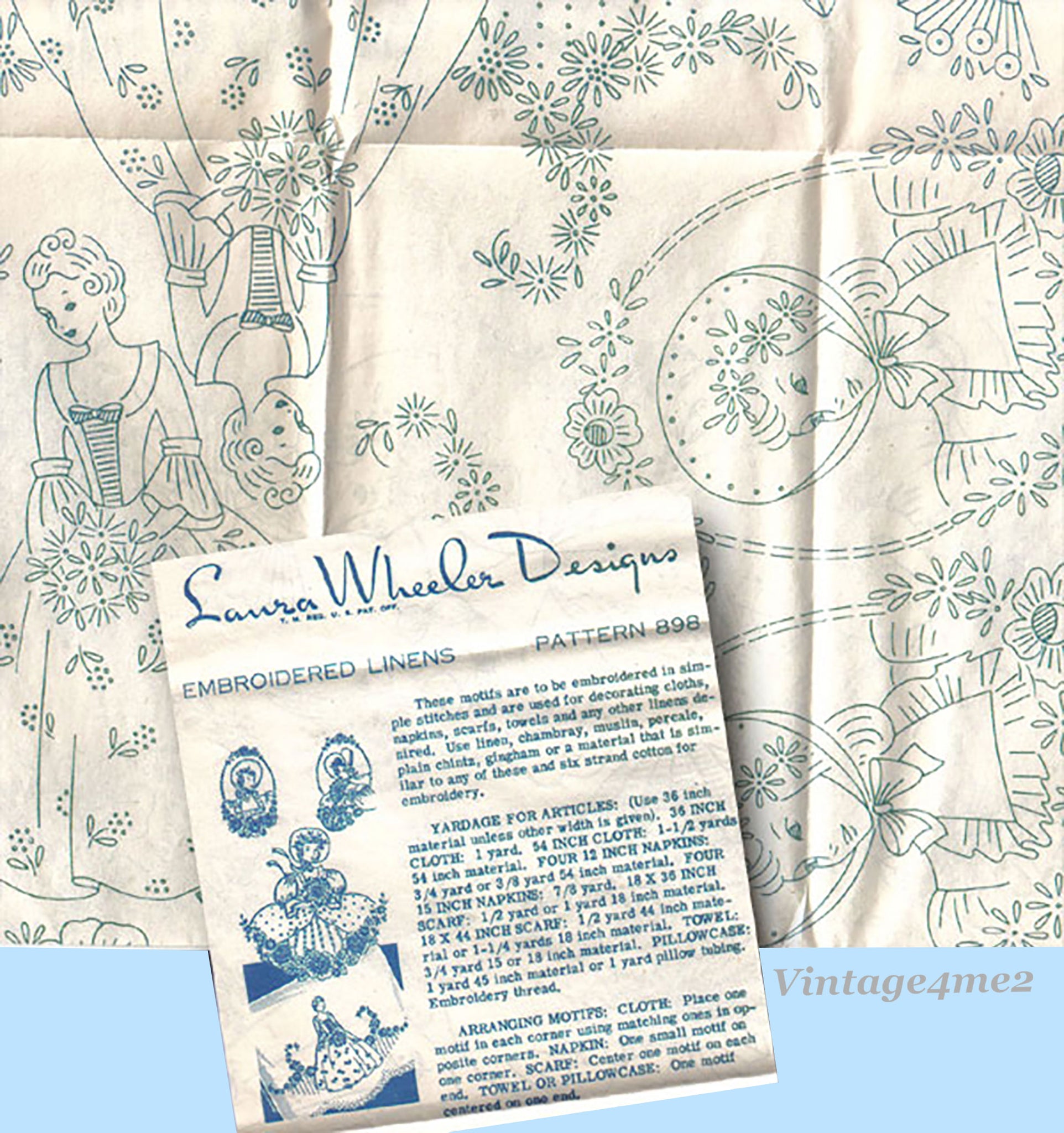 1940s Vintage Laura Wheeler Embroidery Transfer 898 Uncut Garden Gal Pillowcases