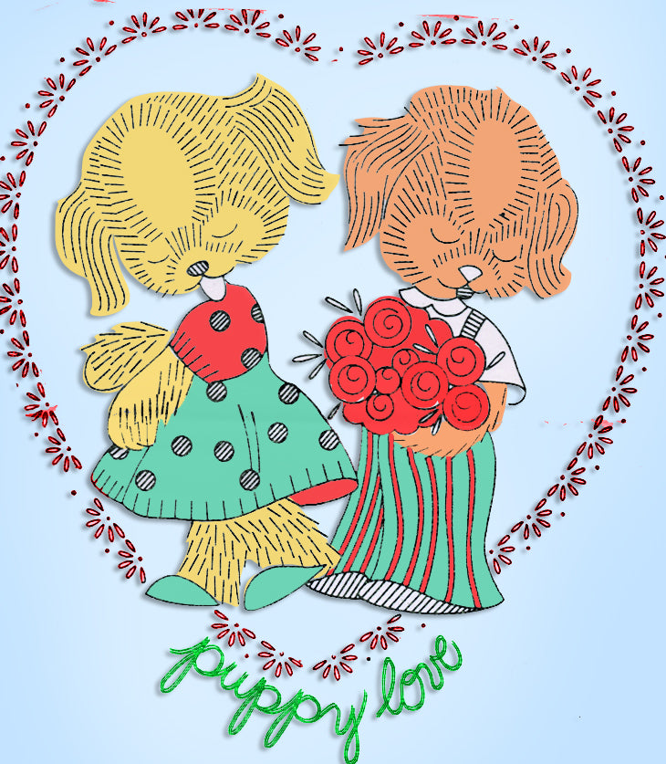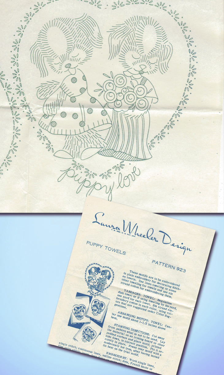 1940s Vintage Laura Wheeler Embroidery Transfer 923 Uncut Puppy Romance Motifs