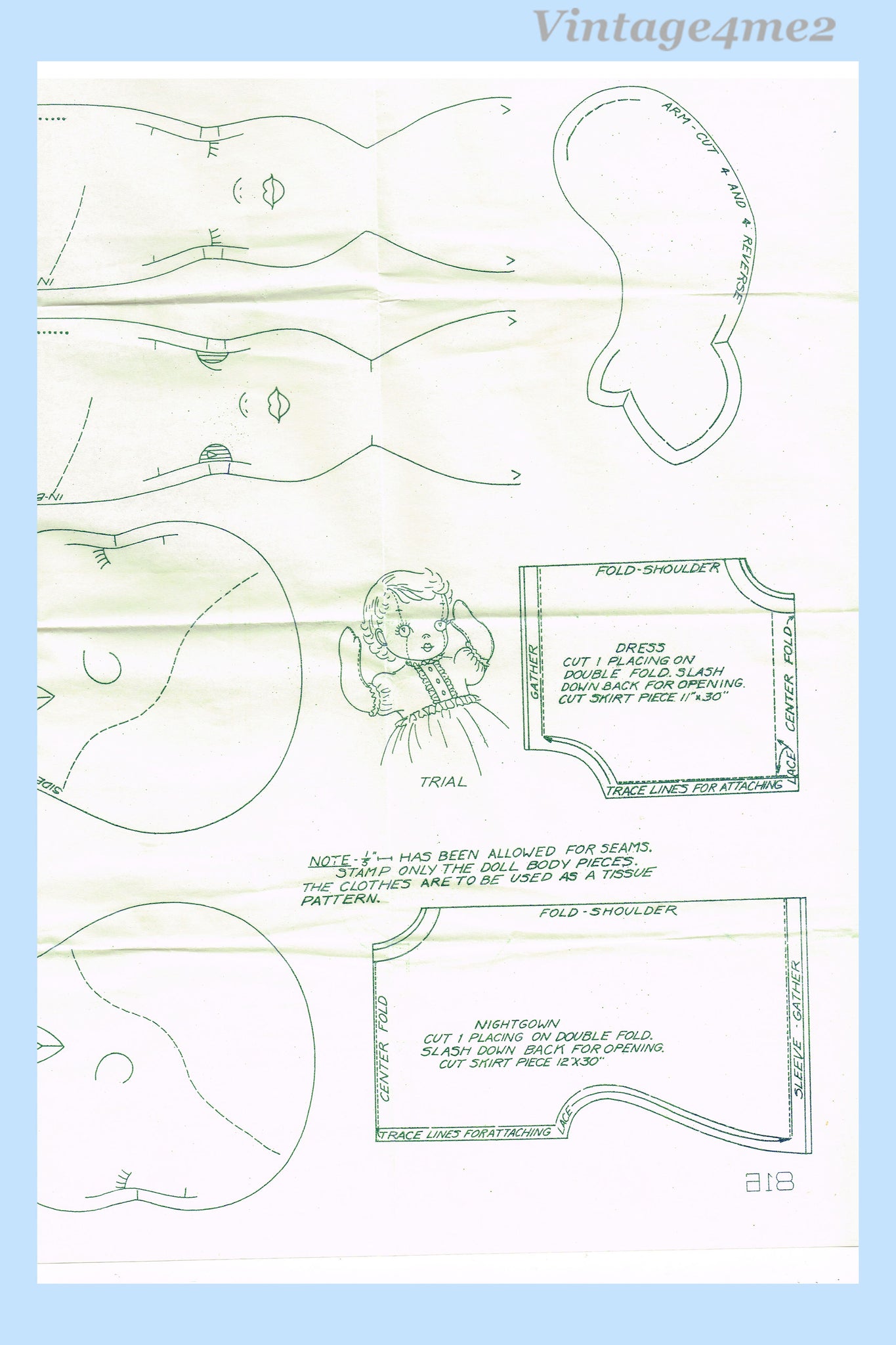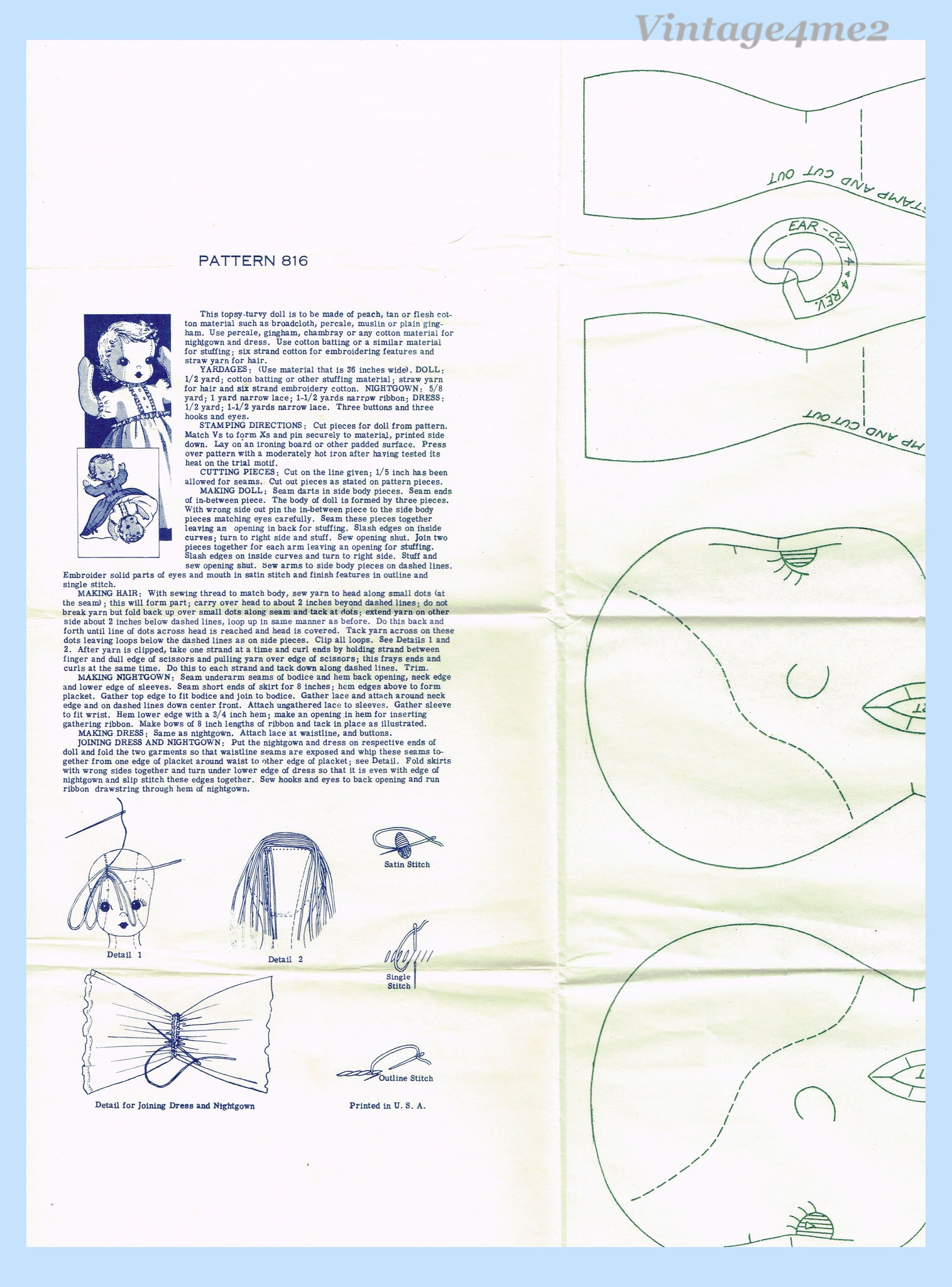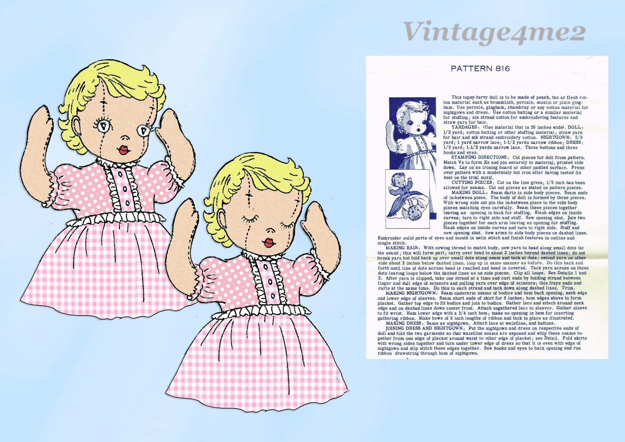 1950s Vintage Mail Order Sewing Pattern 816 Uncut Asleep Awake Cloth Baby Doll