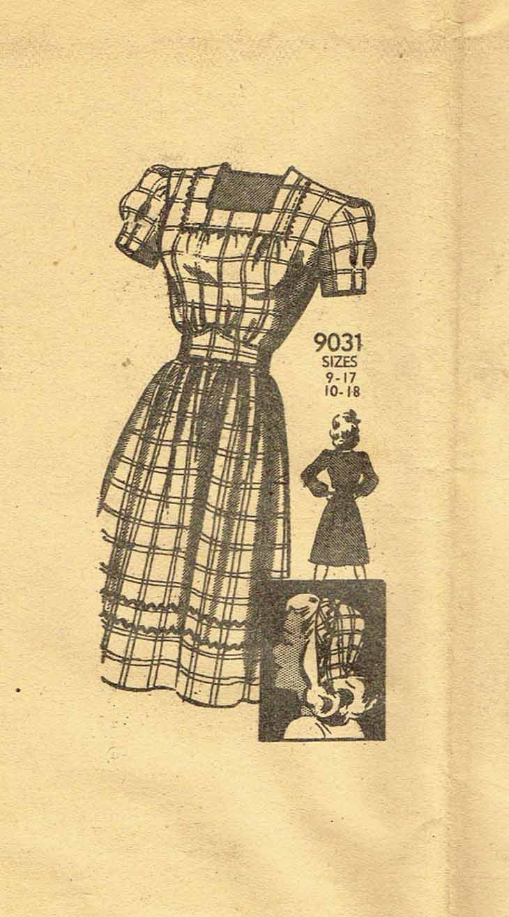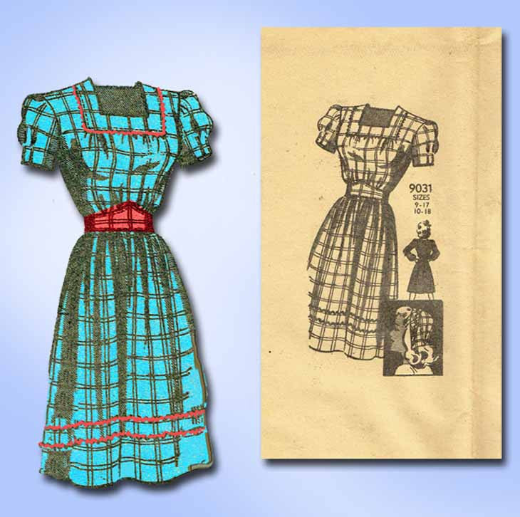 1940s Vintage Marian Martin Sewing Pattern 9031 Misses WWII Dress Hat Sz 16 34B