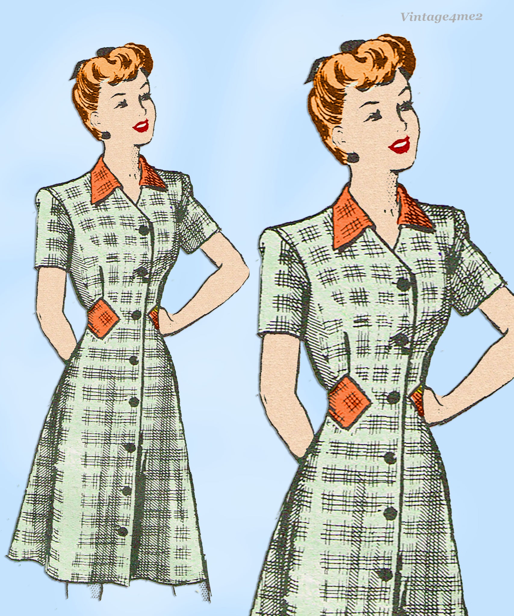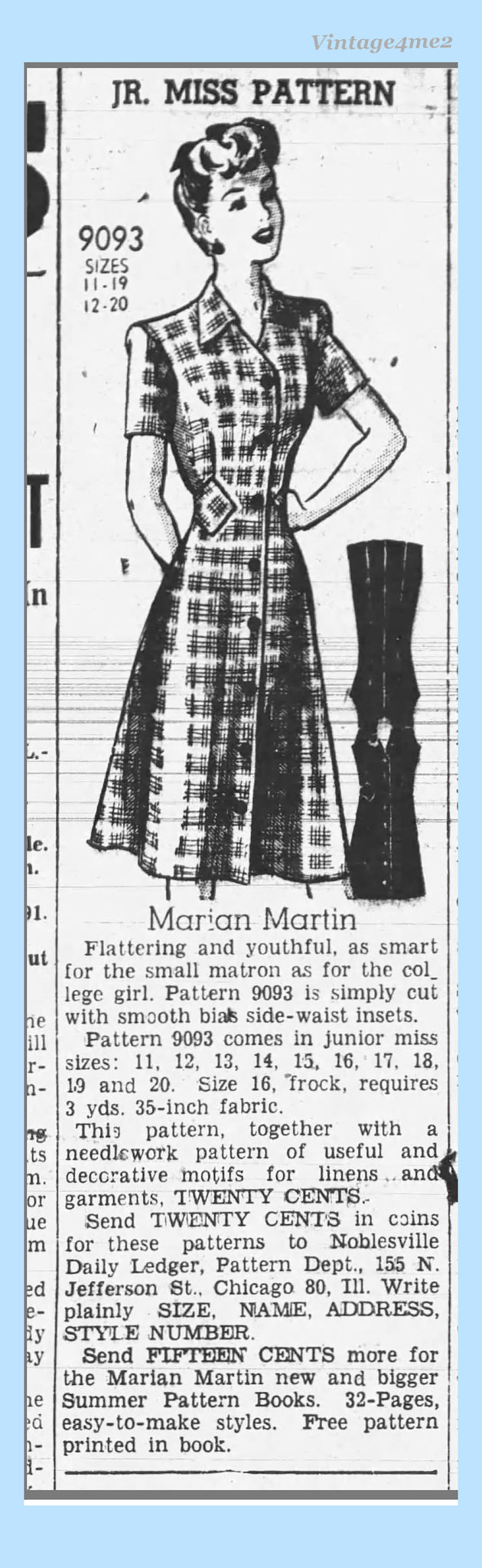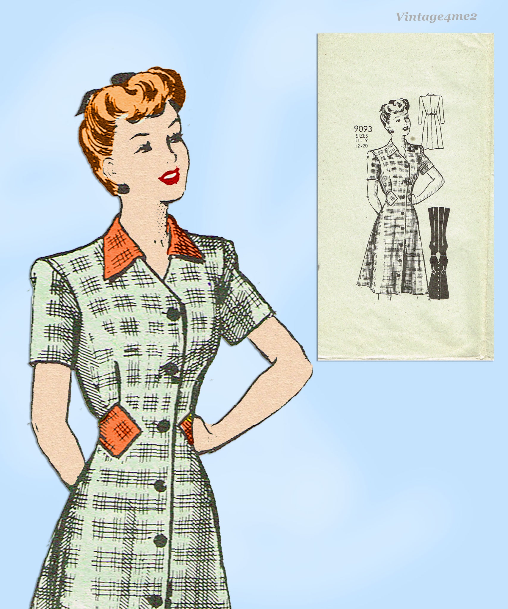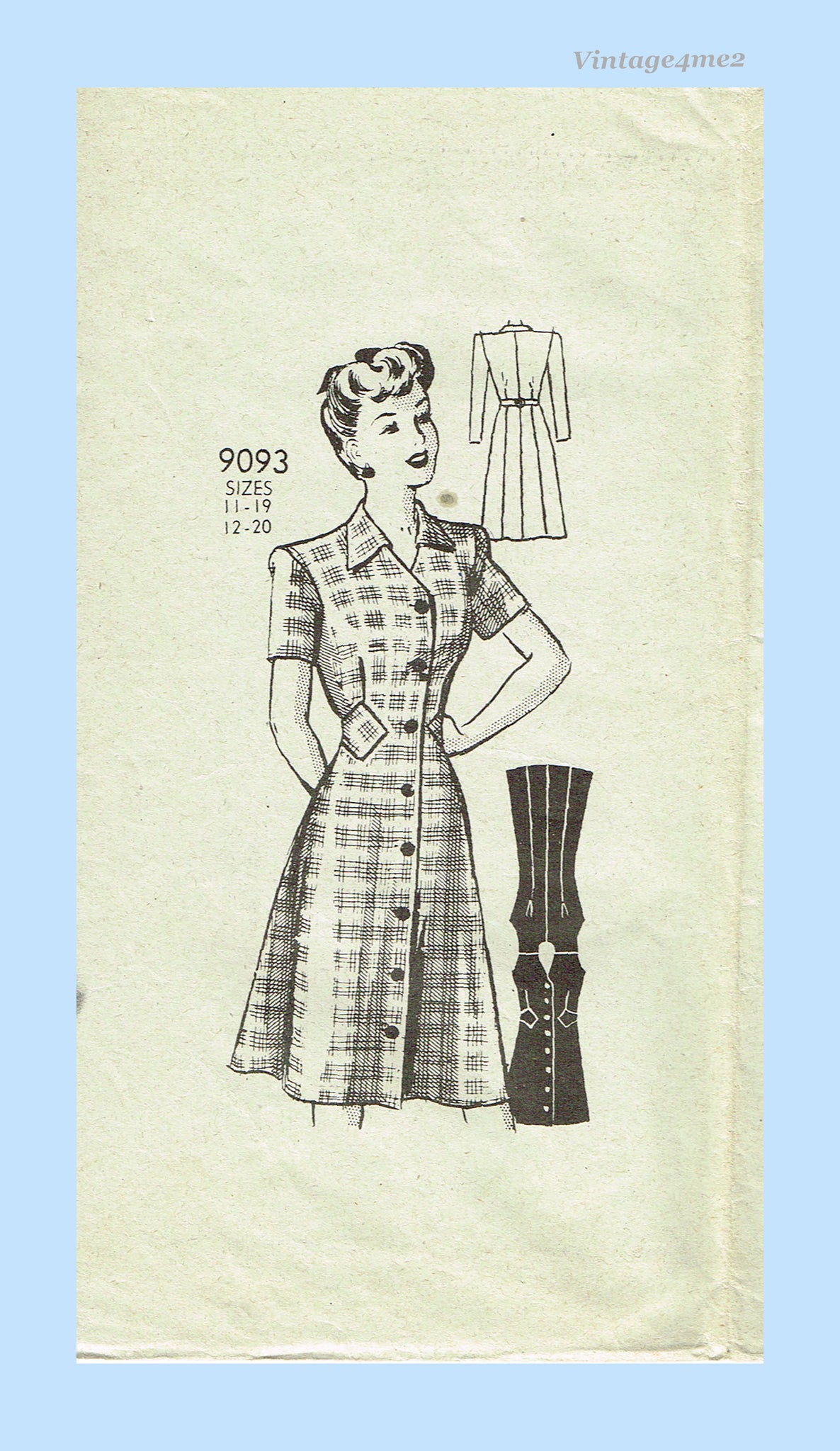1940s Vintage Marian Martin Sewing Pattern 9093 Misses WWII Street Dress Sz 37 B