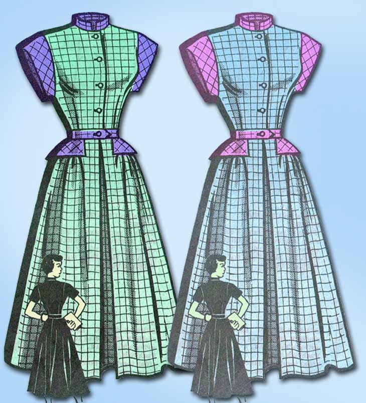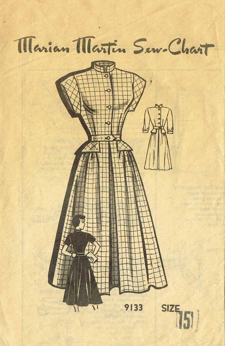 1940s Vintage Marian Martin Sewing Pattern 9133 Misses WWII Peplum Dress Sz 33 B
