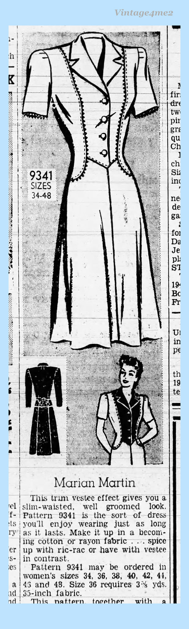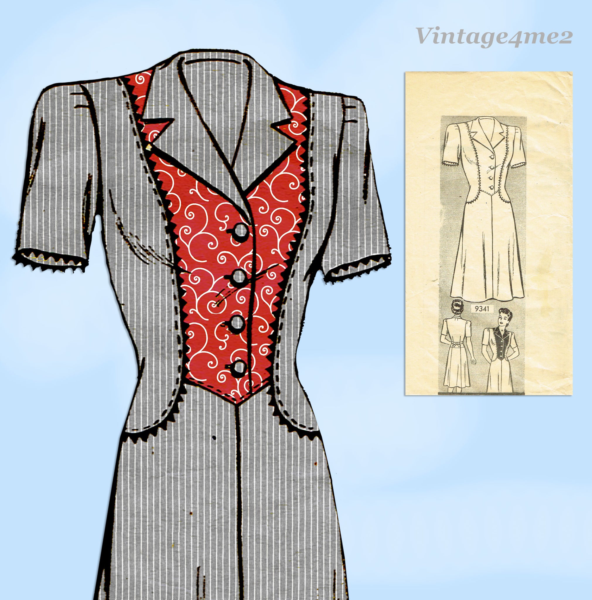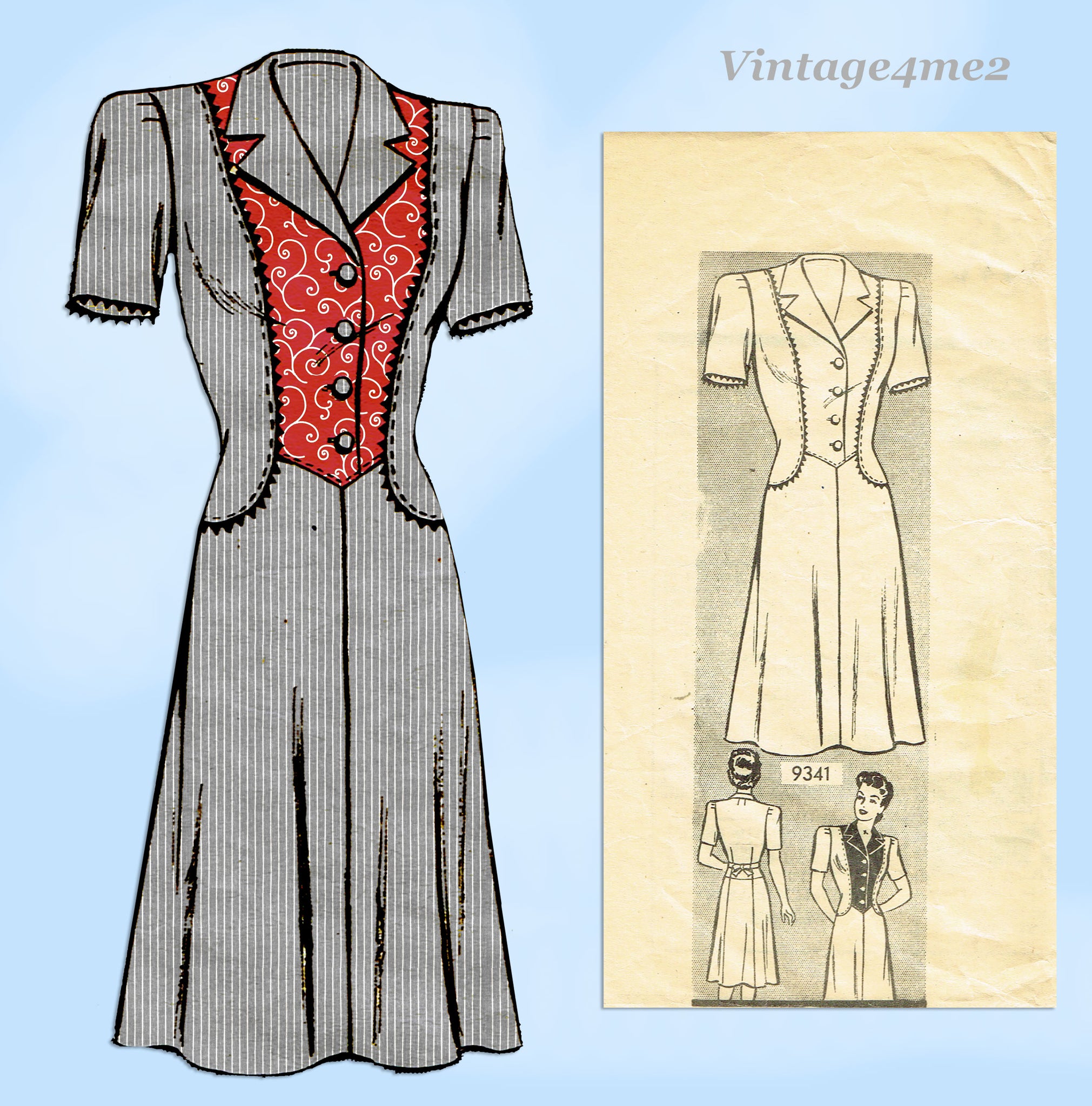 1940s Vintage Marian Martin Sewing Pattern 9341 Stunning Misses WWII Dress Sz 34 B