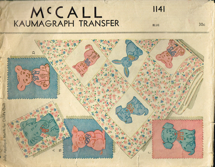 1940s Vintage McCall Kaumagraph Embroidery Transfer 1141 Uncut Crib Quilt Motifs