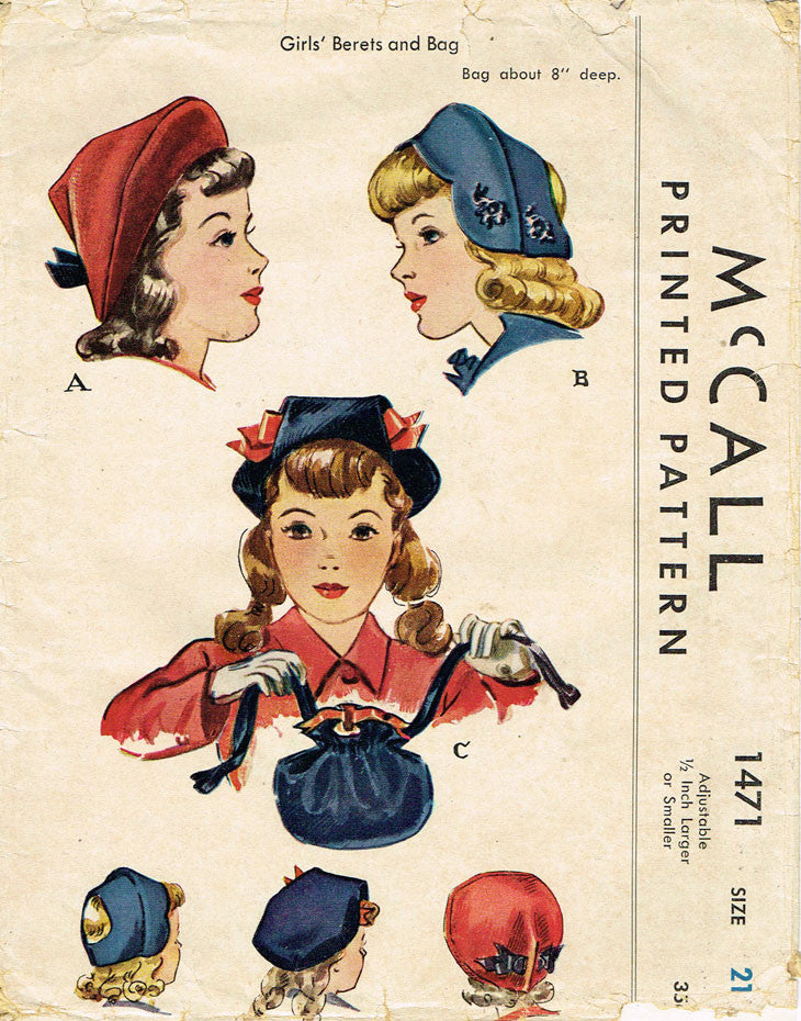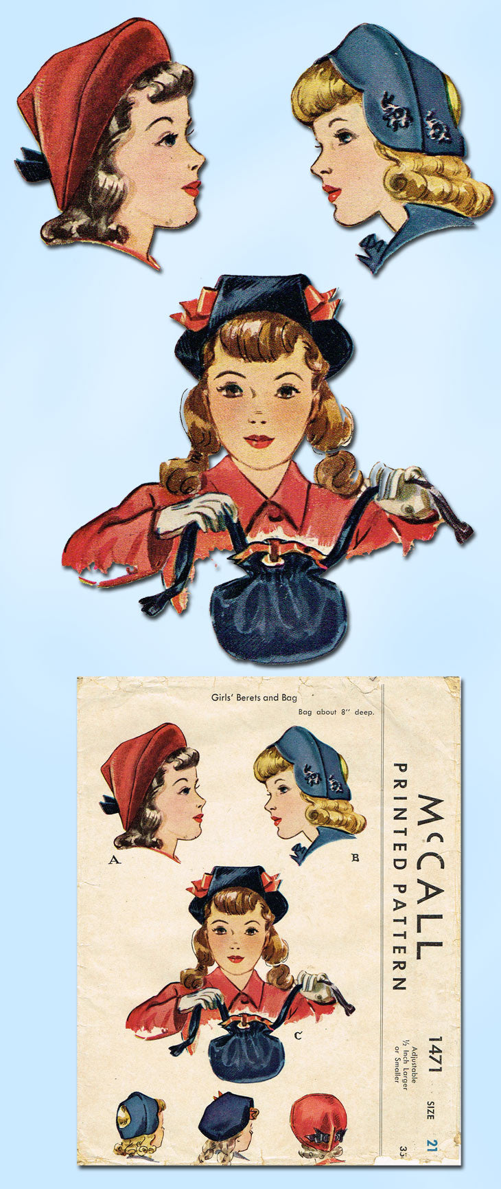 1940s Vintage McCall Sewing Pattern 1471 Uncut Toddler Girls Hat and Purse 21"H