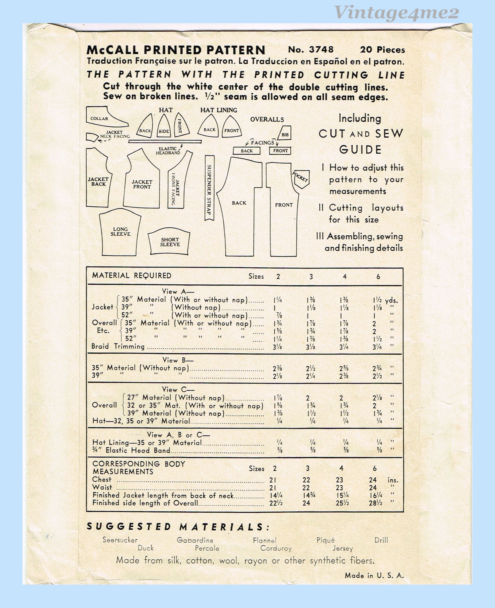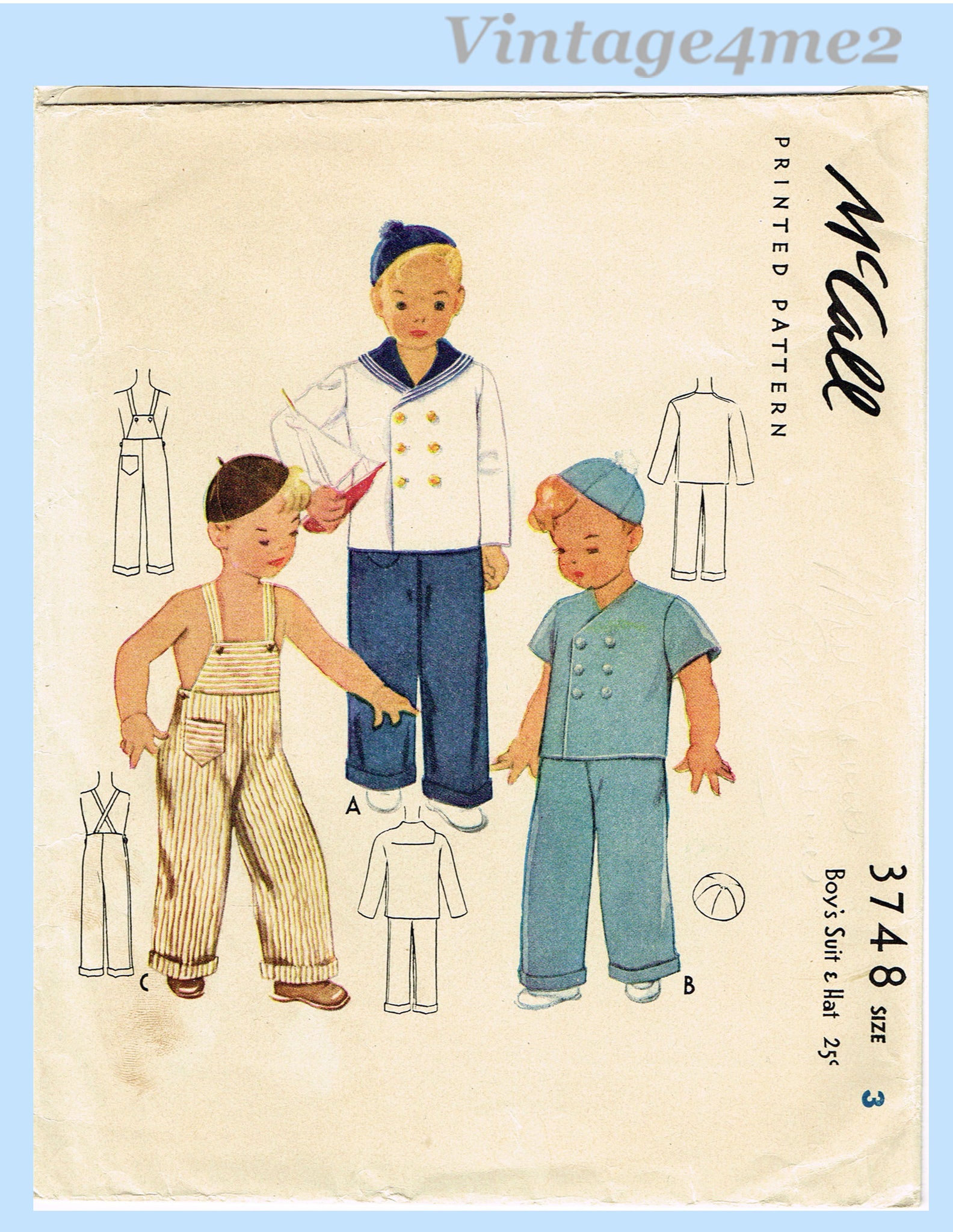 1940s Vintage McCall Sewing Pattern 3748 Uncut Toddler Boys Sailor Suit & Hat Sz3
