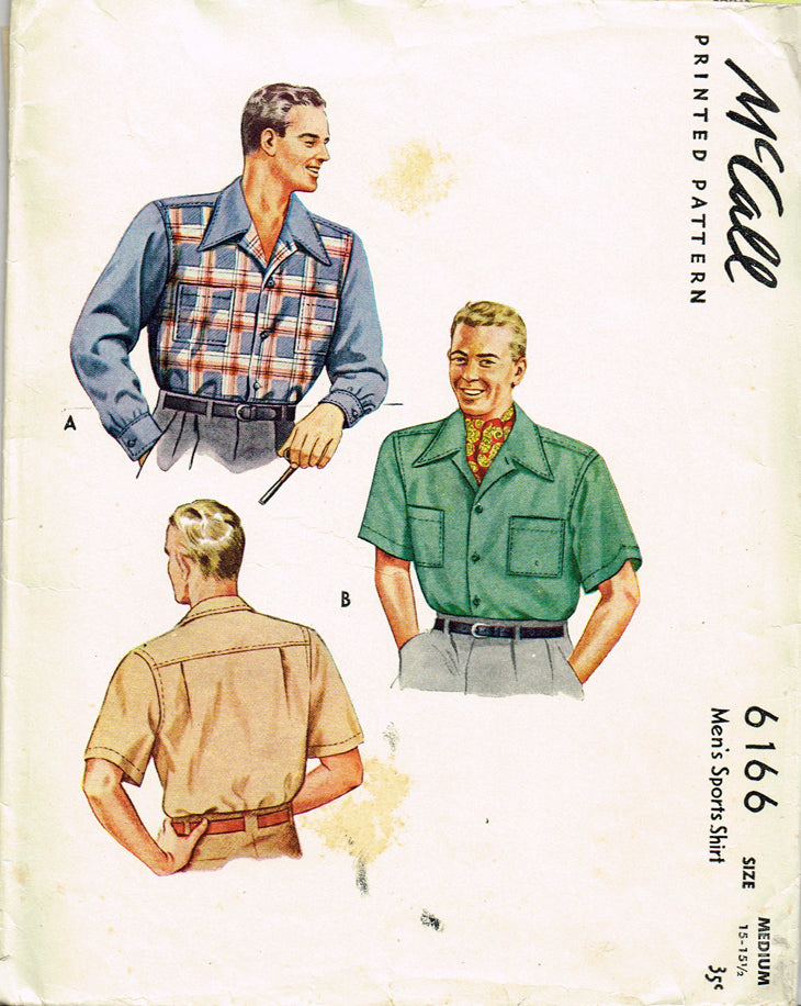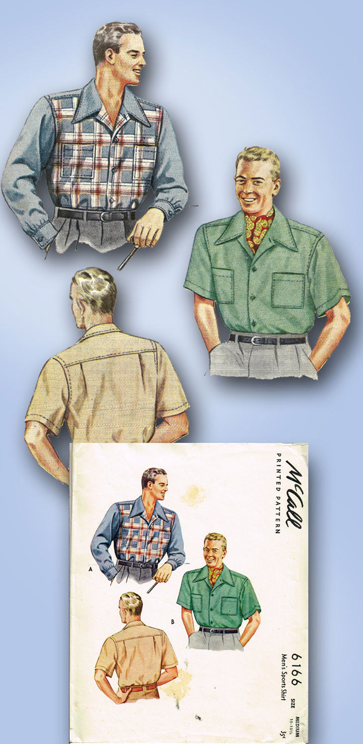 1940s Vintage McCall Sewing Pattern 6166 WWII Men's Casual Shirt Sz 15-15.5 Neck