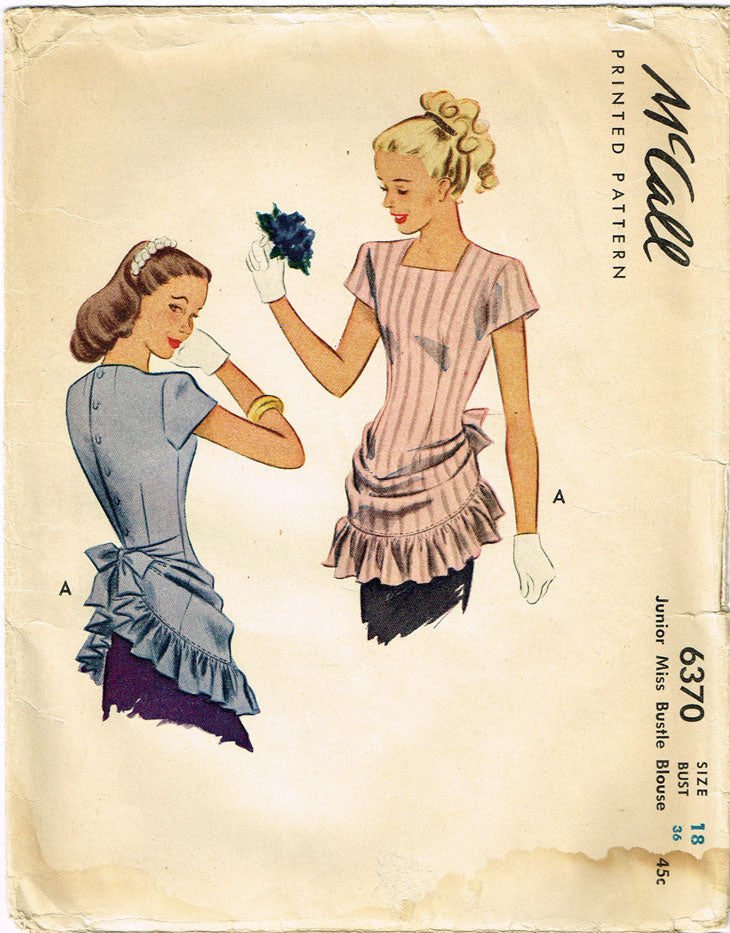 1940s Vintage McCall Sewing Pattern 6370 Uncut Misses Bustle Blouse Sz 36 Bust