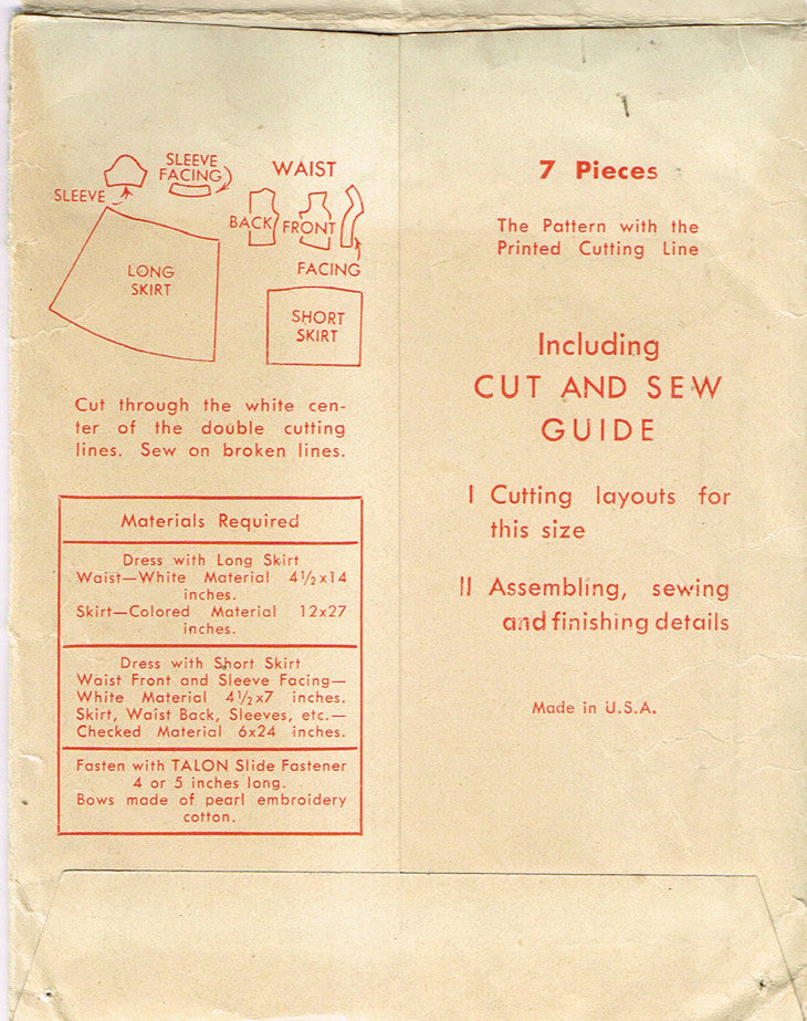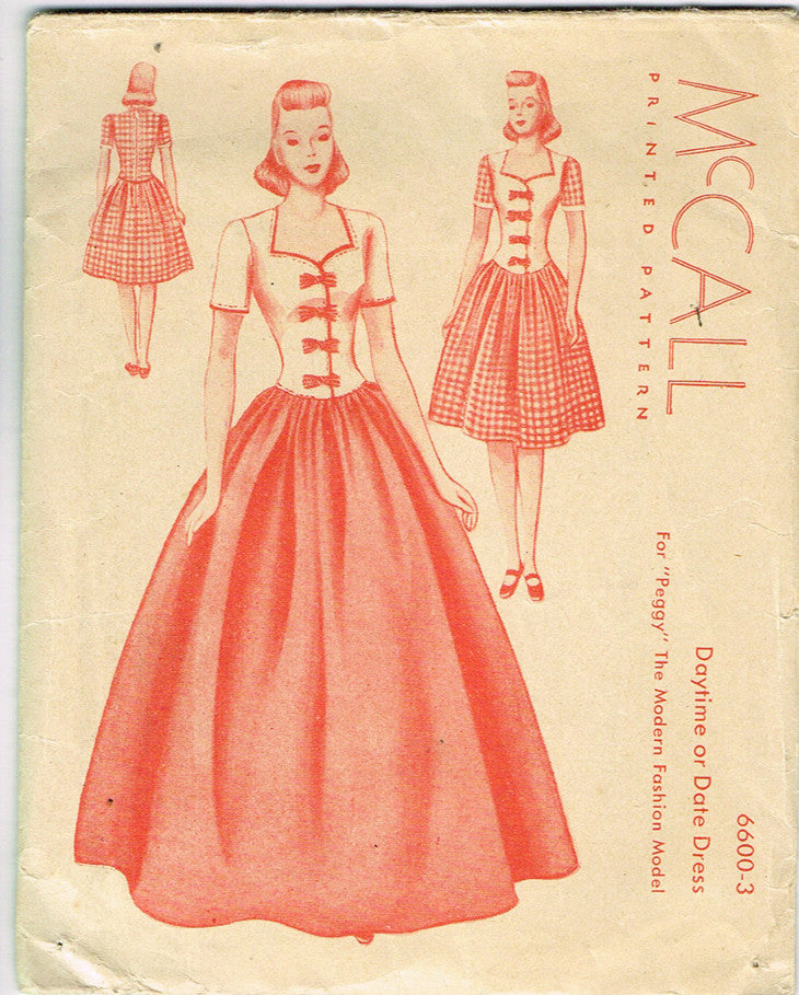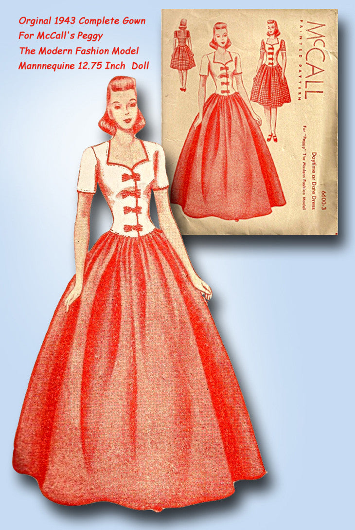 1940s Vintage McCall Sewing Pattern 6600-3 Uncut Peggy Fashion Doll Clothes