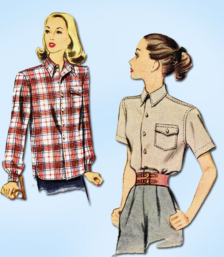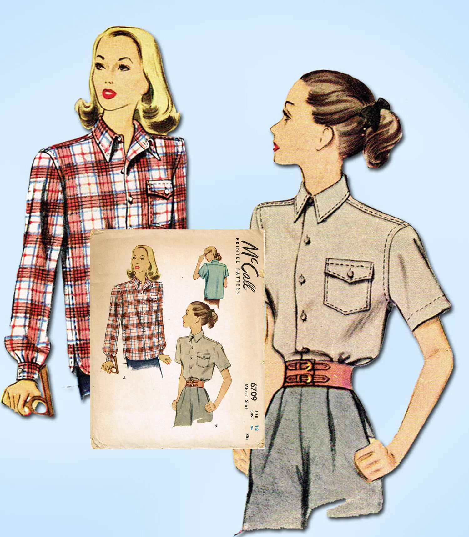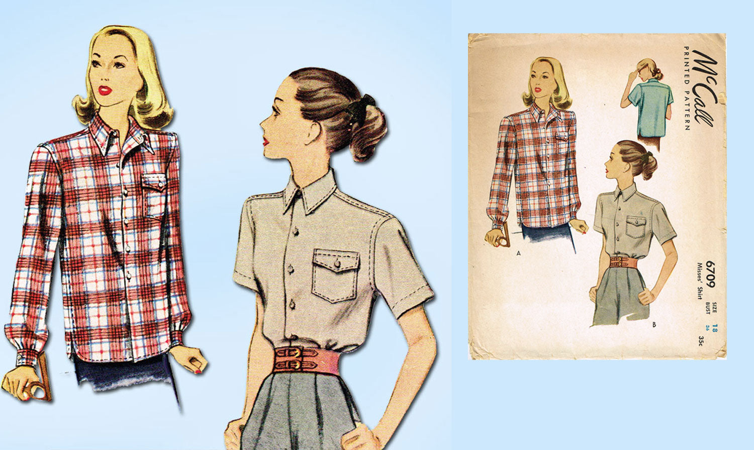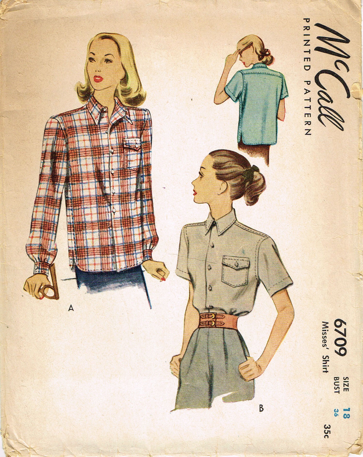1940s Vintage McCall Sewing Pattern 6709 Uncut Misses Casual Shirt Sz 36 Bust
