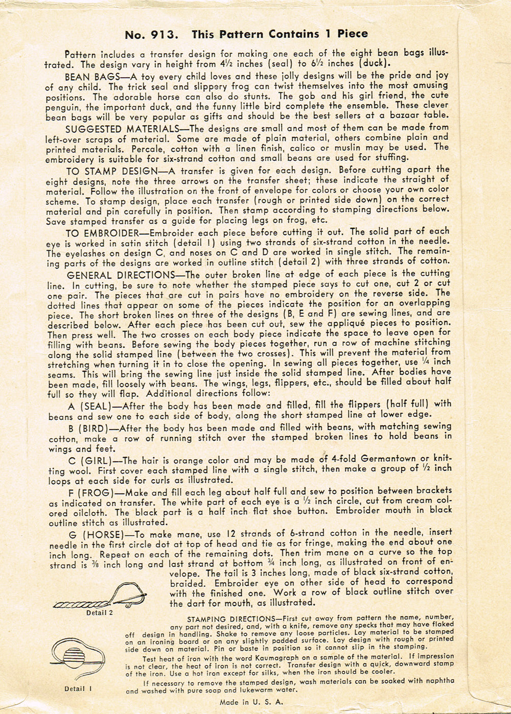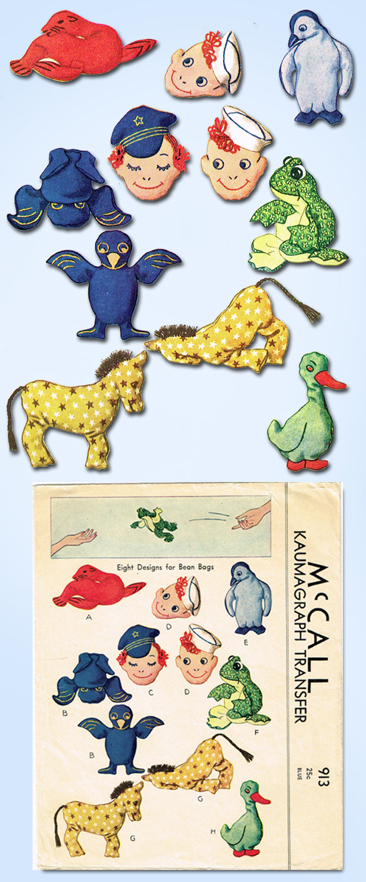 1940s Vintage McCall Sewing Pattern 913 Uncut WWII Bean Bag Doll & Toy Set