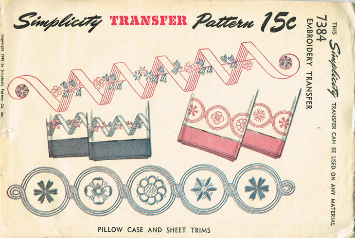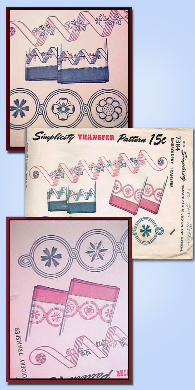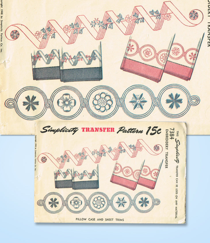 1940s Vintage Simplicity Embroidery Transfer 7384 Geometric Pillowcase Motifs
